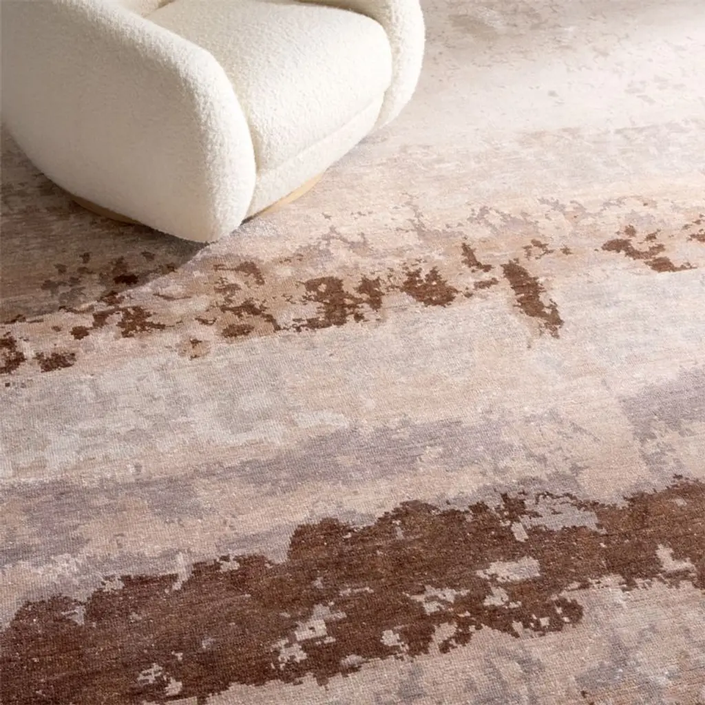 Hand-knotted rug enlivens an abstract landscape through layered organic forms in a palette of sophisticated neutrals. Crafted from a luxurious viscose-wool blend, the rug offers a soft hand with a subtle sheen, adding depth and dimension to the Sarah Von Dreele design. Dense construction ensures both durability and intricate detail, making this piece as enduring as it is visually striking. CB2 exclusive.How will it look in your room? 12"x12" rug samples are available in stores for a fee refundable upon return of the sample.
