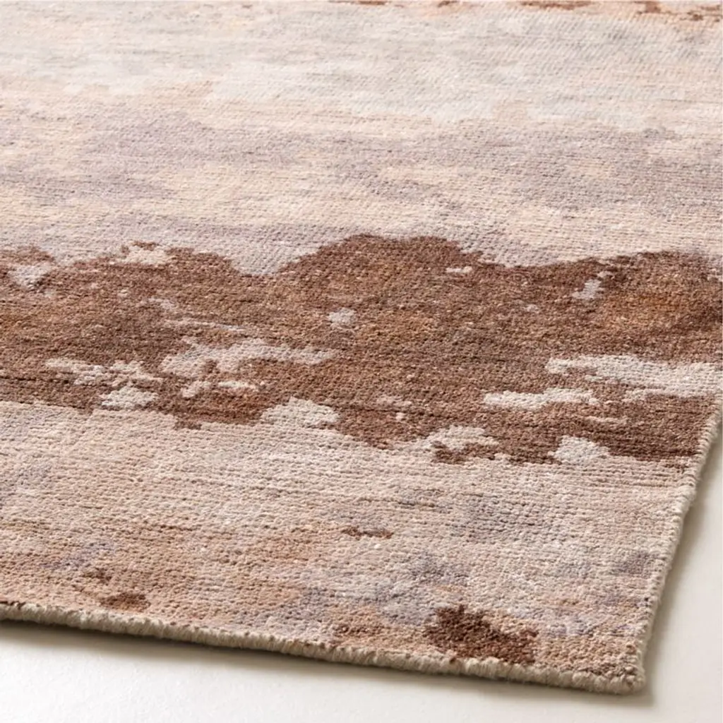 Hand-knotted rug enlivens an abstract landscape through layered organic forms in a palette of sophisticated neutrals. Crafted from a luxurious viscose-wool blend, the rug offers a soft hand with a subtle sheen, adding depth and dimension to the Sarah Von Dreele design. Dense construction ensures both durability and intricate detail, making this piece as enduring as it is visually striking. CB2 exclusive.How will it look in your room? 12"x12" rug samples are available in stores for a fee refundable upon return of the sample.