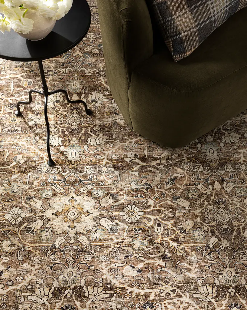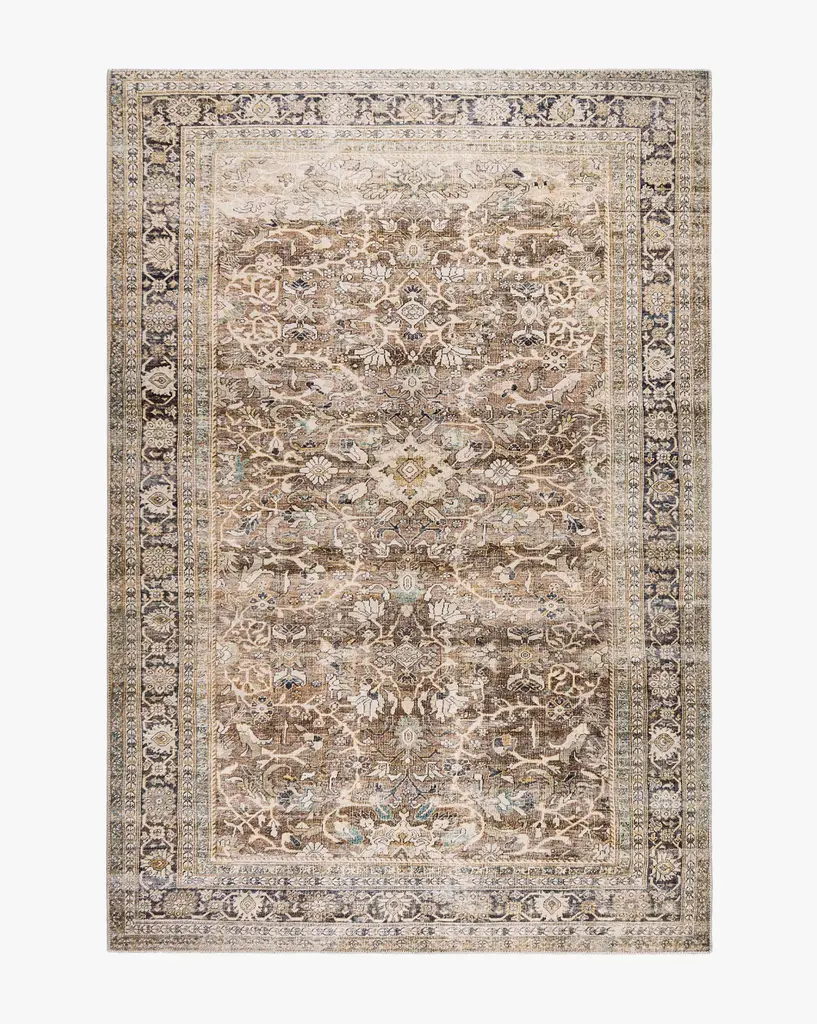 Versatile and elegant, our Isameta Rug boasts a deep palette of dark brown, tan, cream, black, and gold. With an intricate and traditionally inspired motif, this rug brings a classic look and feel to your space while anchoring your furniture with enduring quality.
