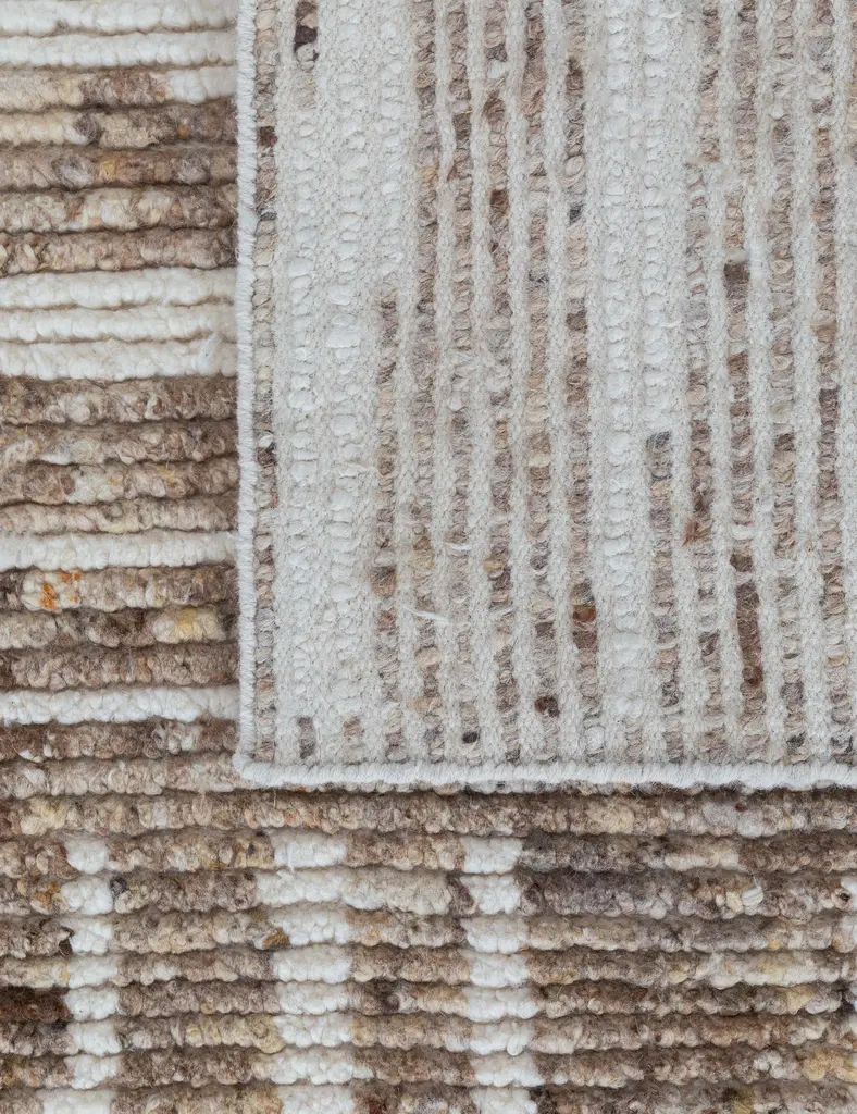 Hand-knotted with soft tonal contrast and a dense, textured pile, the Isamu rug lays down depth and texture in a grounded design. The linear pattern adds a graphic edge with understated impact, making it a natural anchor for a living room or bedroom. This wool area rug blends tactile comfort with modern design.