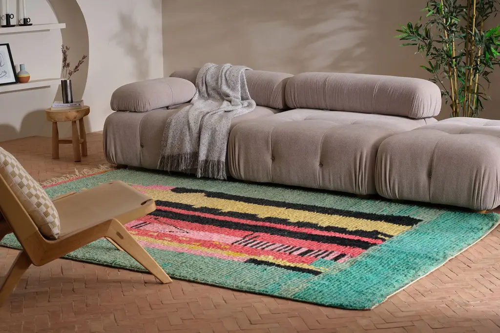 One-of-a-kind new rug, hand-knotted near the small city of Boujad in the Chaouia-Ouardigha region of Morocco