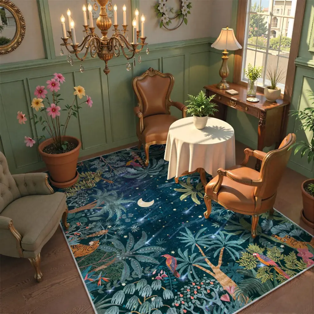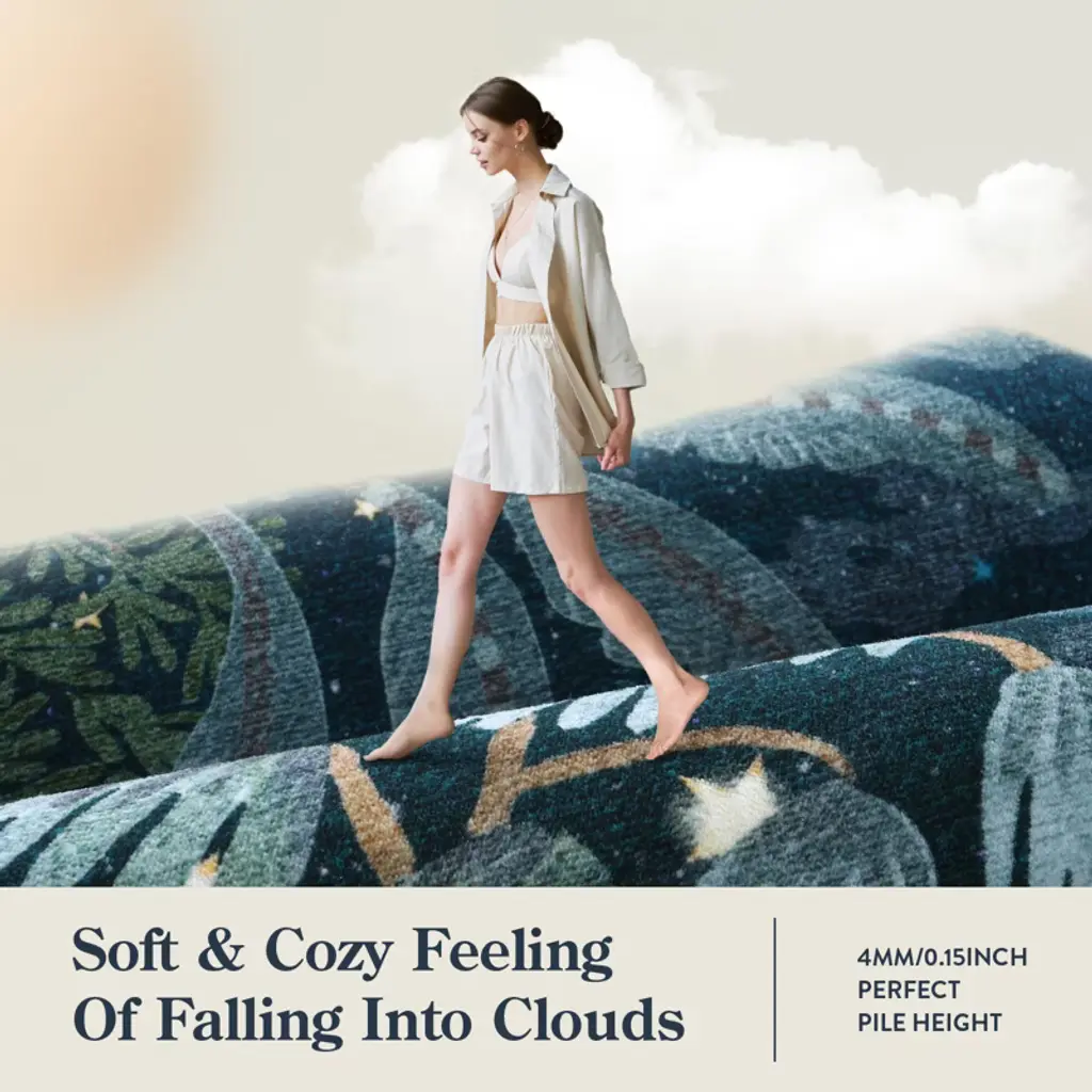 Transform your living spaces with this exquisite faux wool rug. Its dense surface and plush feel are like stepping on a cloud, while the botanical motifs bring a touch of the jungle indoors. The TPE backing ensures slip - resistance, enhancing safety during family activities. It's incredibly easy to clean; for daily upkeep, use a vacuum, and for a deep clean, wash it in cold water on a gentle cycle and air - dry. Initially, it may come with creases as it's folded in a small package, but simply unroll it or place heavy books on it to flatten. This low - pile, lightweight rug won't obstruct doorways or furniture. It's suitable for a wide range of large spaces including entryways, bedrooms, living rooms, playrooms, dining rooms, nurseries, dorms, and home offices. With its soft and cozy material, it adds a warm and inviting atmosphere to your home, making it a practical and stylish choice.