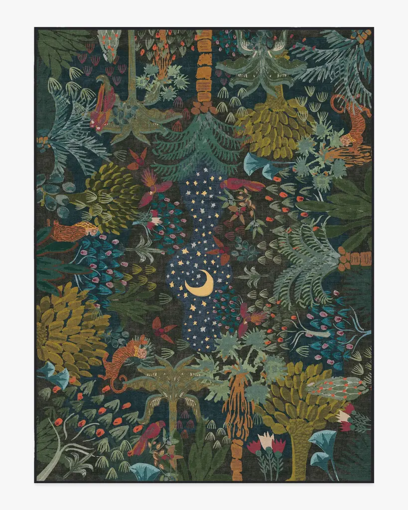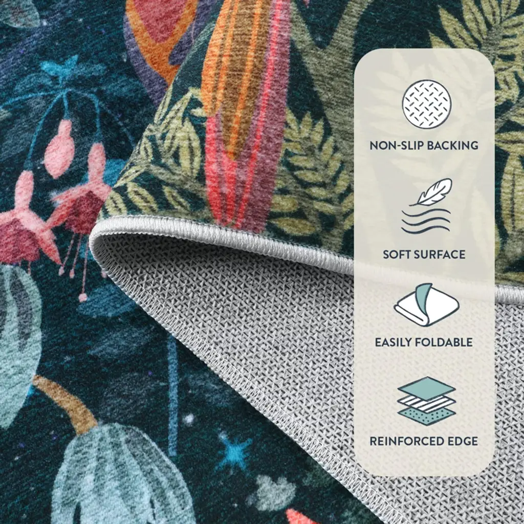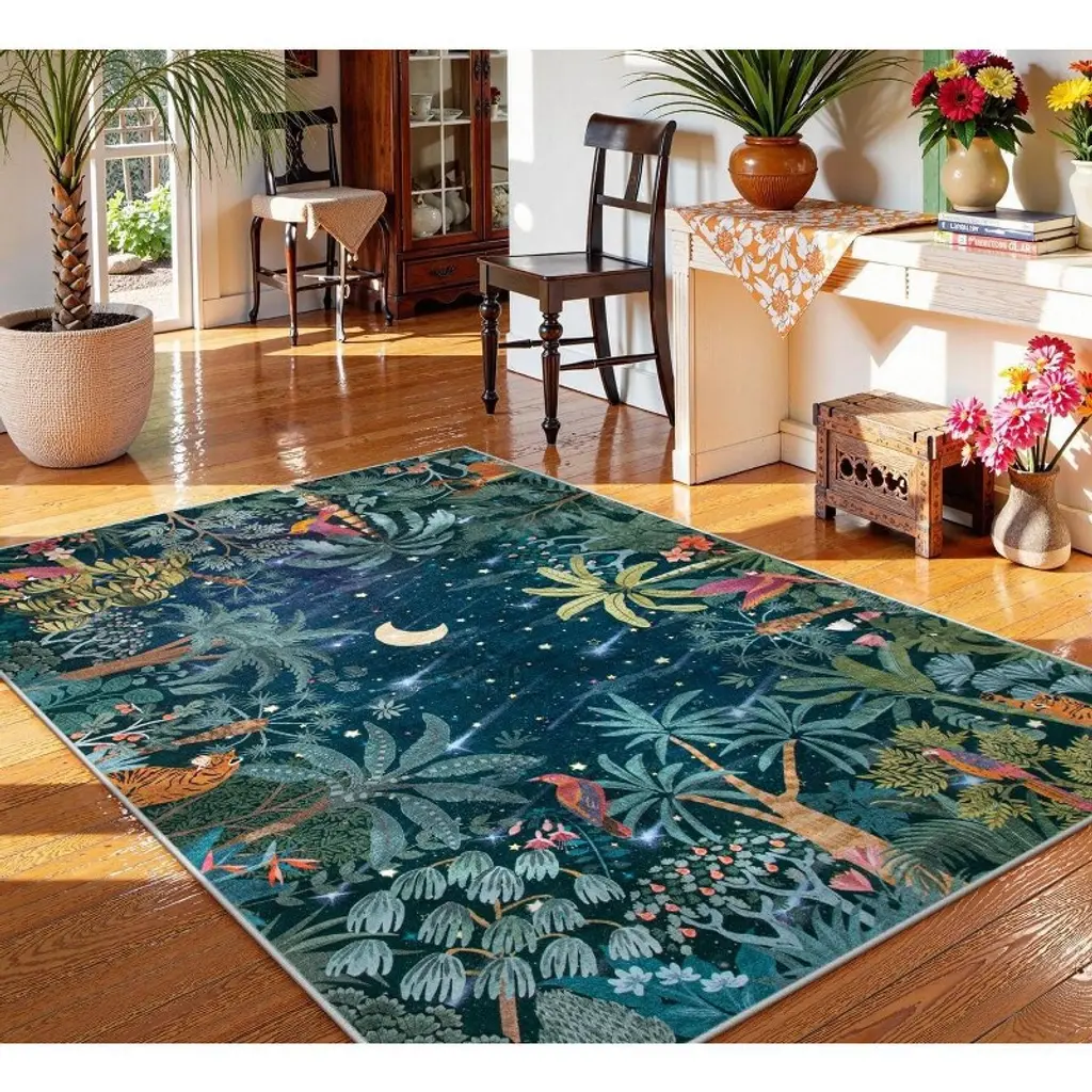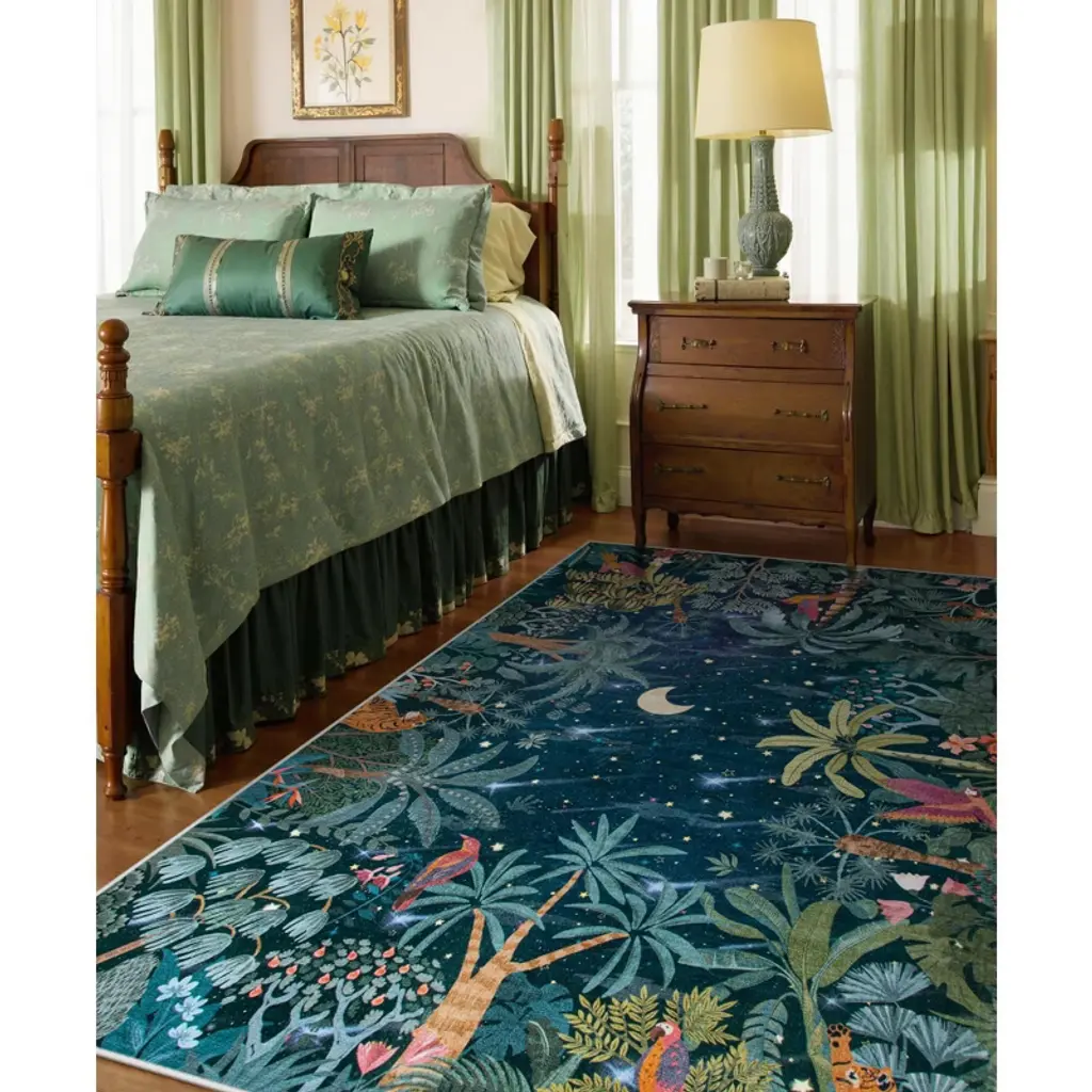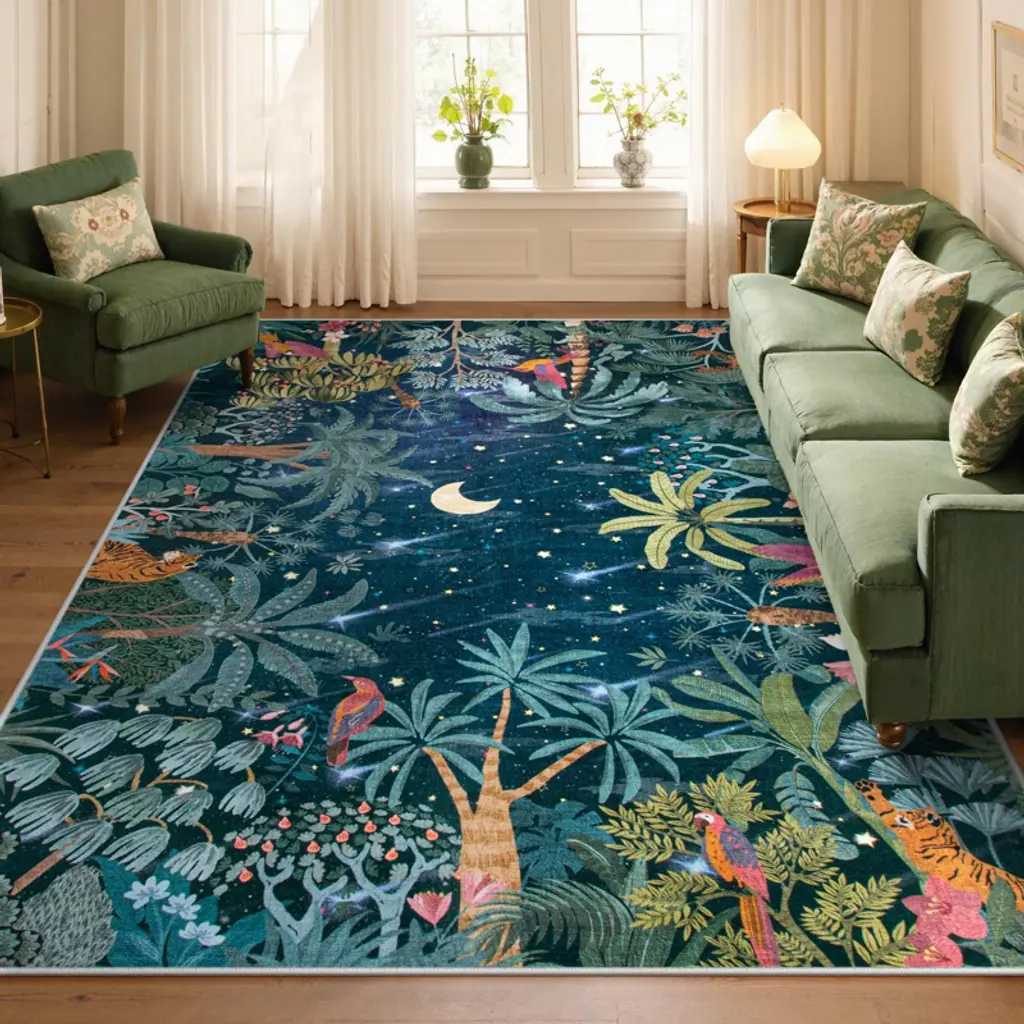 Itopfox Midnight Jungle Green Washable Rug, Soft Area Carpet For Bedroom, Office, Living Room, Dining Room, Botanical Non Slip Rug