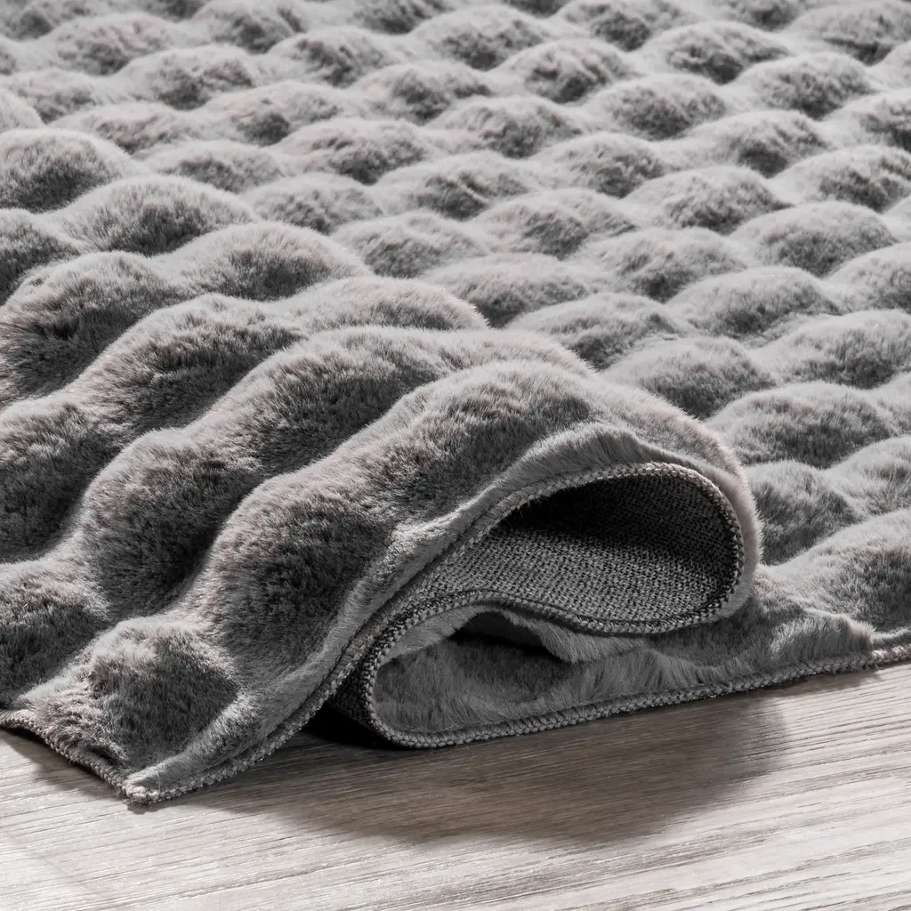 Ivana Checkered Plush Cloud Washable Rug | Dark Grey - 6' X 6'