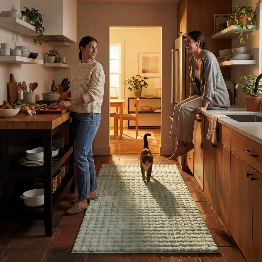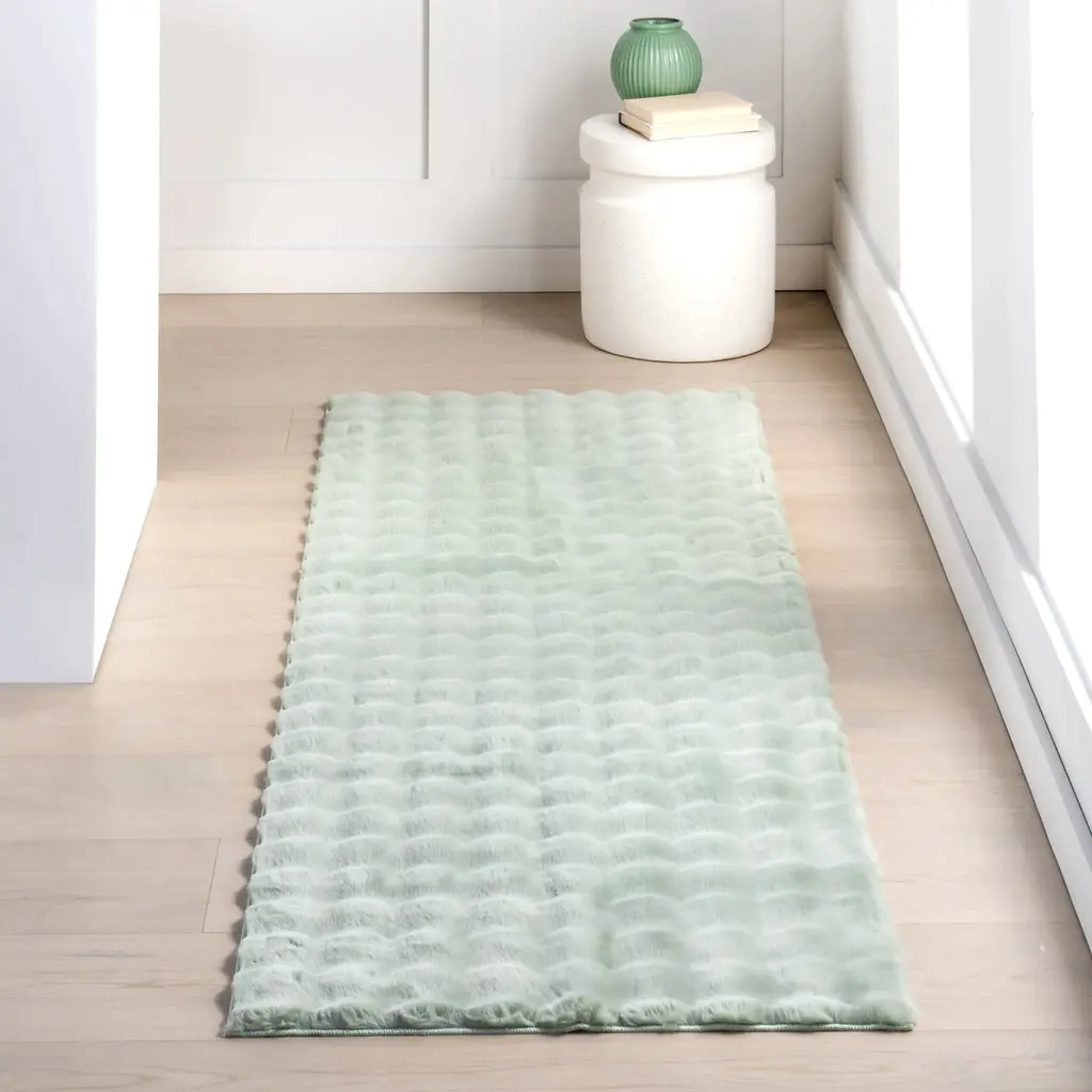Ivana Checkered Plush Cloud Washable Rug | Green - 2' 6" X 8'