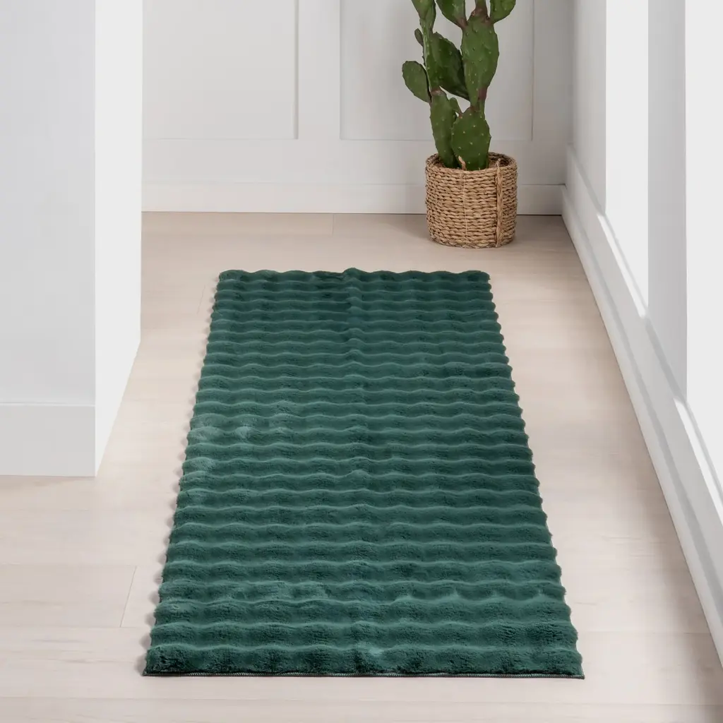 Ivana Checkered Plush Cloud Washable Rug | Hunter Green - 2' 6" X 8'