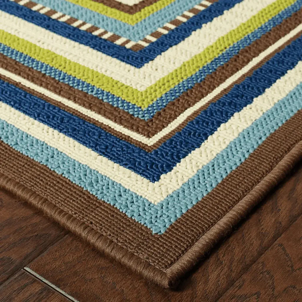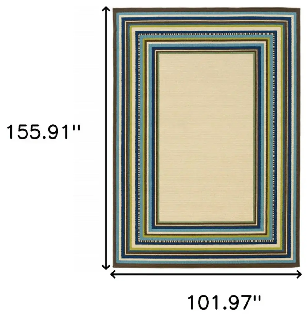 Add some artistry to your room with this ivory and blue striped indoor outdoor area rug. This rectangle shaped rug features a striped design in ivory and blue to give it visual interest. A classic shape marries with good looking design for your space Area Rugs help to give warmth and sense of home to your space. 1-inch H x 101.97-inch W x 155.91-inch D