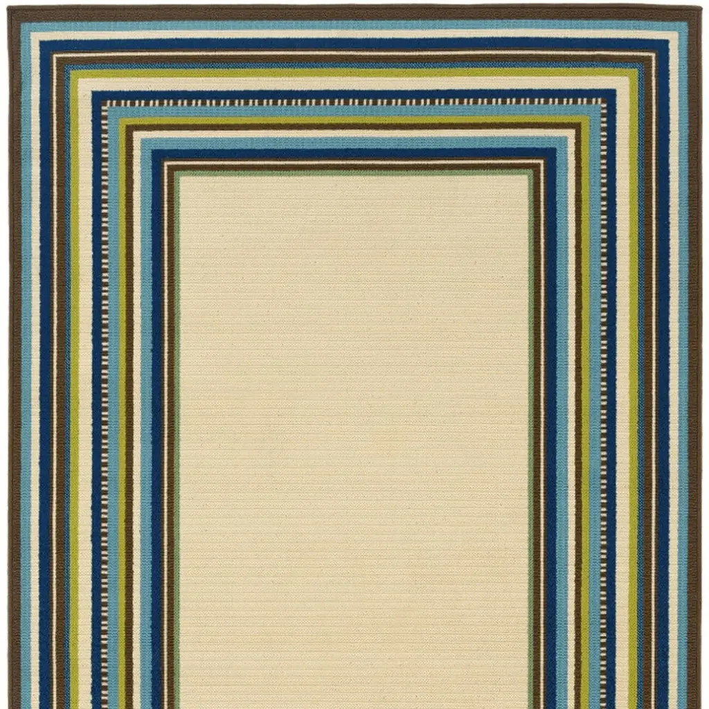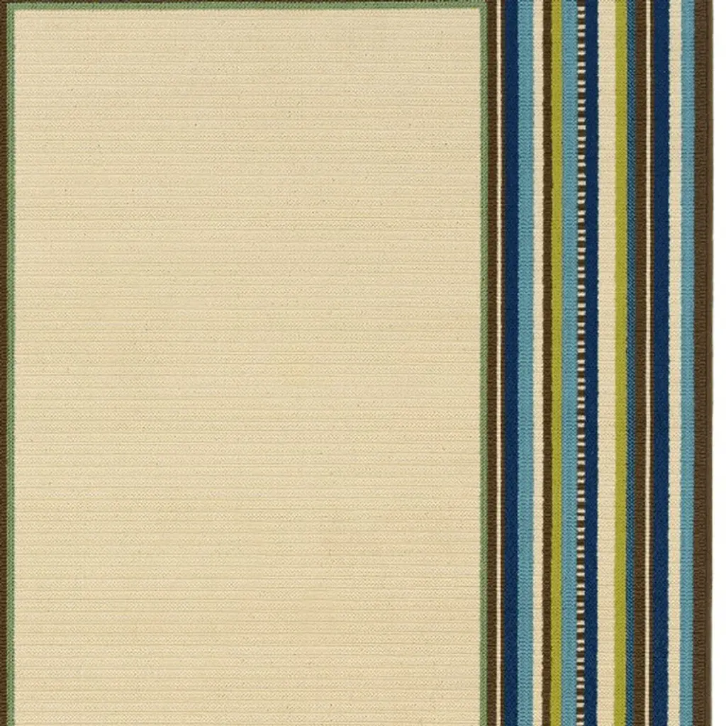 Ivory And Blue Striped Indoor Outdoor Area Rug