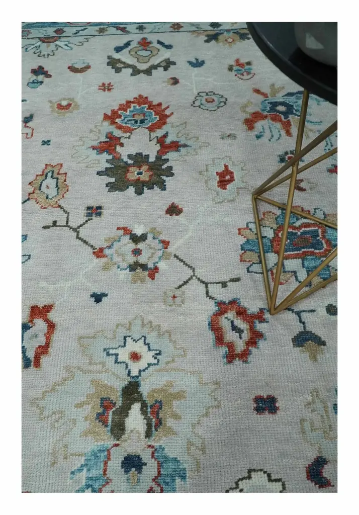 This Hand-Knotted Rug has been Made with Handspun Wool, which has a natural shine and softness to it. The beautiful colors of the rug carry a legacy of the famous Oushak rug, the traditional design of the rug completes your space without making it look busy. Oushak rugs are durable and can last for decades if treated right. Hand-Knotted Softback loose and lightweight All wool foundation and pile Made to Order in 30-45 Days Color: Muted Ivory and Blue Perfect fit for Living Room, Dining Area, or Bedroom Oushak rugs have been made for centuries and carry a tradition and art. This specific rug is made in India, in the city of Bhadohi. Bhadohi is one of the biggest rug manufacturing cities. Carpet weaving in the region dates back to the 16th century during the reign of Akbar. The skilled artisans of Bhadohi have been carrying the tradition of rug-making for centuries. USERS GUIDE Avoid prolonged moisture Vacuum regularly and/or shake to remove dust Do not pull any loose threads. Use scissors to simply cut the ends Blot spills immediately with a white cloth. Harsh chemicals may damage or fade the rug Use rug protectors under heavy furniture