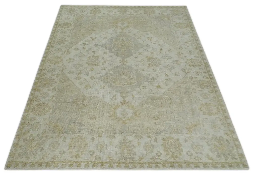 This exquisite Hand knotted Beige and Silver distressed finished Traditional Low Pile Multi Size wool Area Rug is expertly crafted from fine grade wool. The distressed finished and low pile provide a luxurious feel, perfect for a traditional space. Add elegance to your home with this timeless piece. Hand-Knotted SIZES ARE MADE TO ORDER IN 30-45 DAYS Made with Wool Color : Ivory and Brown This specific rug is made in India, in the city of Bhadohi. Bhadohi is one of the biggest rug manufacturing cities. Carpet weaving in the region dates back to the 16th century during the reign of Akbar. The skilled artisans of Bhadohi have been carrying the tradition of rug-making for centuries. USERS GUIDE Avoid prolonged moisture Vacuum regularly and/or shake to remove dust Do not pull any loose threads. Use scissors to simply cut the ends The blot spills immediately with a white cloth. Harsh chemicals may damage or fade the rug Use rug protectors under heavy furniture