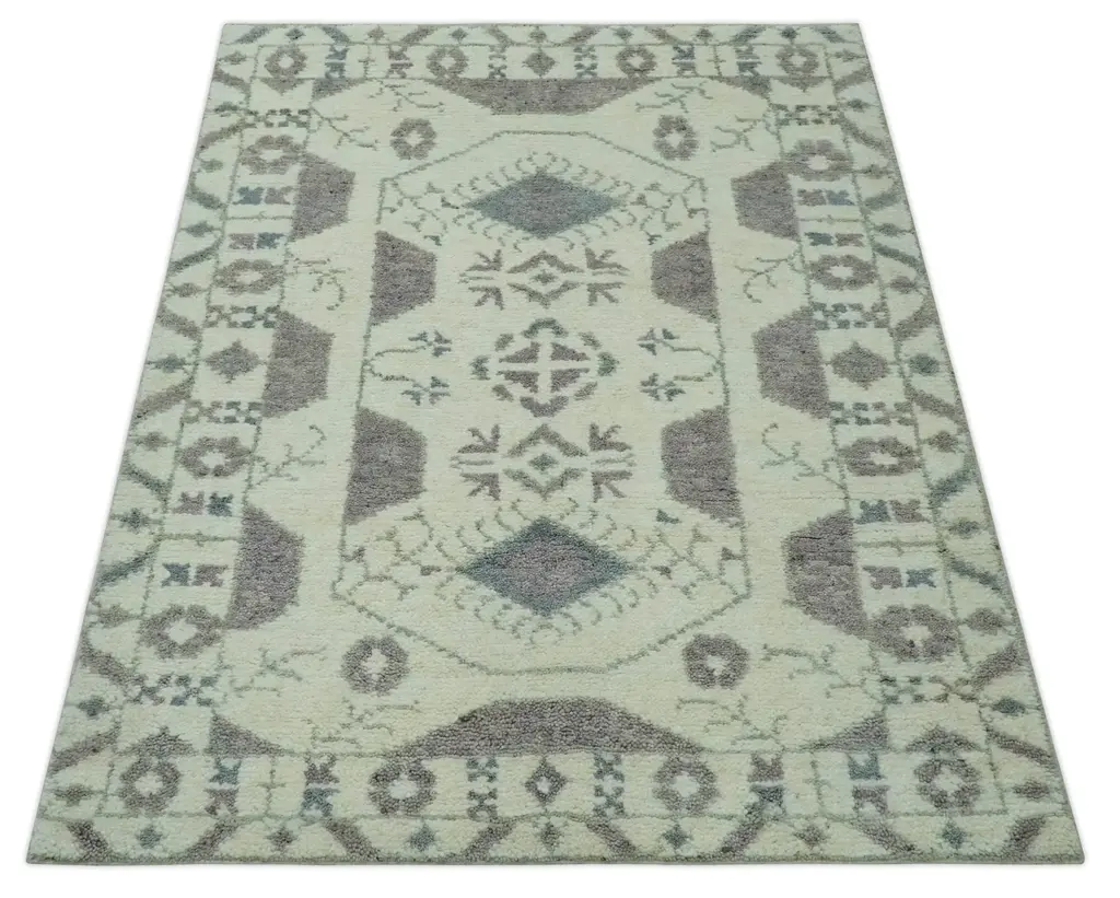 Ivory And Brown Traditional Hand Knotted Multi Size Wool Area Rug - 3X5