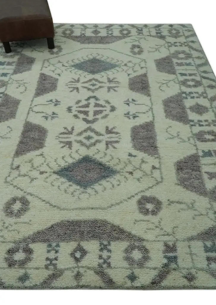 This traditional rug features a classic ivory and brown color scheme, hand-knotted with high-quality wool. The multi-size options offer versatility in styling options. Elevate any room with this durable, expertly crafted rug. Hand-Knotted Rug Made with Wool Color: Ivory and Brown ALL SIZES ARE MADE TO ORDER 30 - 60 Days USERS GUIDE Avoid prolonged moisture Vacuum regularly and shake to remove dust Do not pull any loose threads. Use scissors to simply cut the ends The blot spills immediately with a white cloth. Harsh chemicals may damage or fade the rug Use rug protectors under heavy furniture