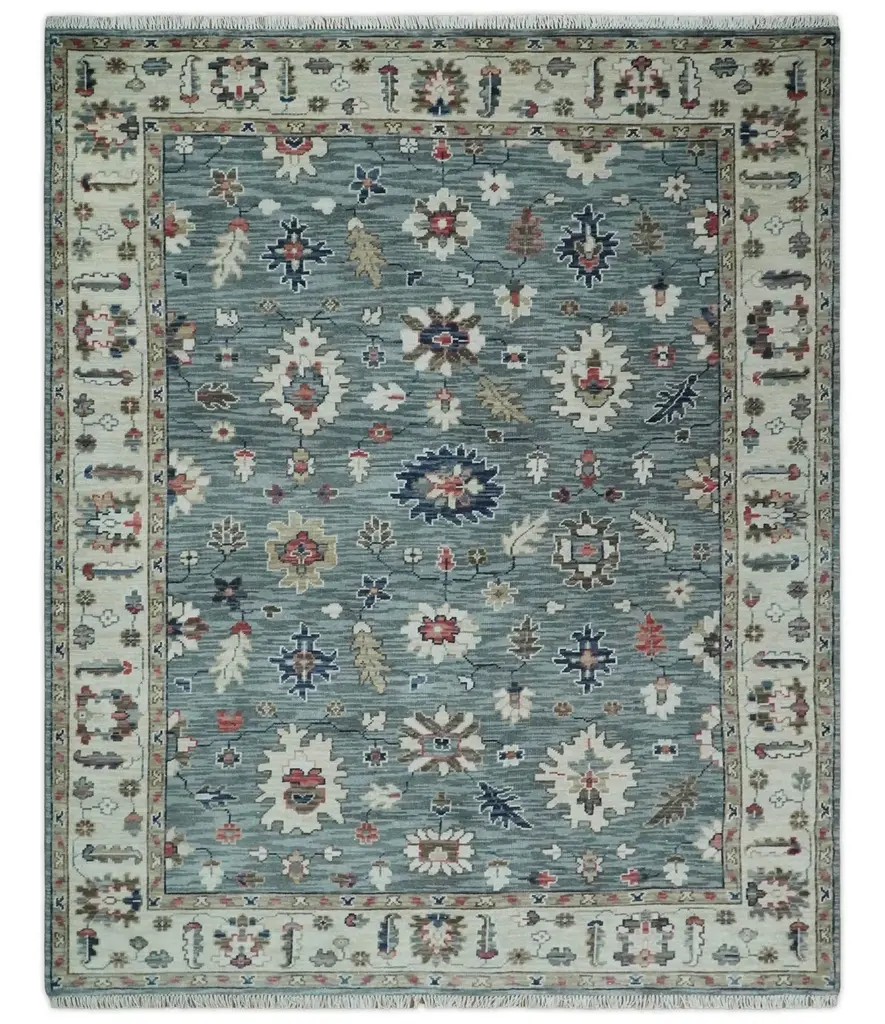 The Oriental Oushak design with a classic color combination of Blue and Ivory gives it an antique look. The rug is made with fine Wool. It is a perfect pick to give your interior a classic feel. Hand-knotted wool rug Sizes are made to order in 30-45 days Made with fine Hand-spun Wool Color: Ivory and Gray Contact us for custom size Oushak or Ushak rugs are Turkish rugs that use a particular family of designs. Oushak rug's origin can be traced back to the Ottoman empire. Oushak rugs are evergreen Persian rugs. A lot of Oushak rugs are machine-made now, but we have carried this legacy forward in India. Our Oushak rugs are handmade with fine imported wool in Bhadohi, which is one of the biggest rug manufacturing cities. Carpet weaving in the region dates back to the 16th century during the reign of Akbar. The skilled artisans of Bhadohi have been carrying the tradition of rug-making for centuries.USERS GUIDE Avoid prolonged moisture Vacuum regularly and/or shake to remove dust Do not pull any loose threads. Use scissors to simply cut the ends Blot spills immediately with a white cloth. Harsh chemicals may damage or fade the rug Use rug protectors under heavy furniture