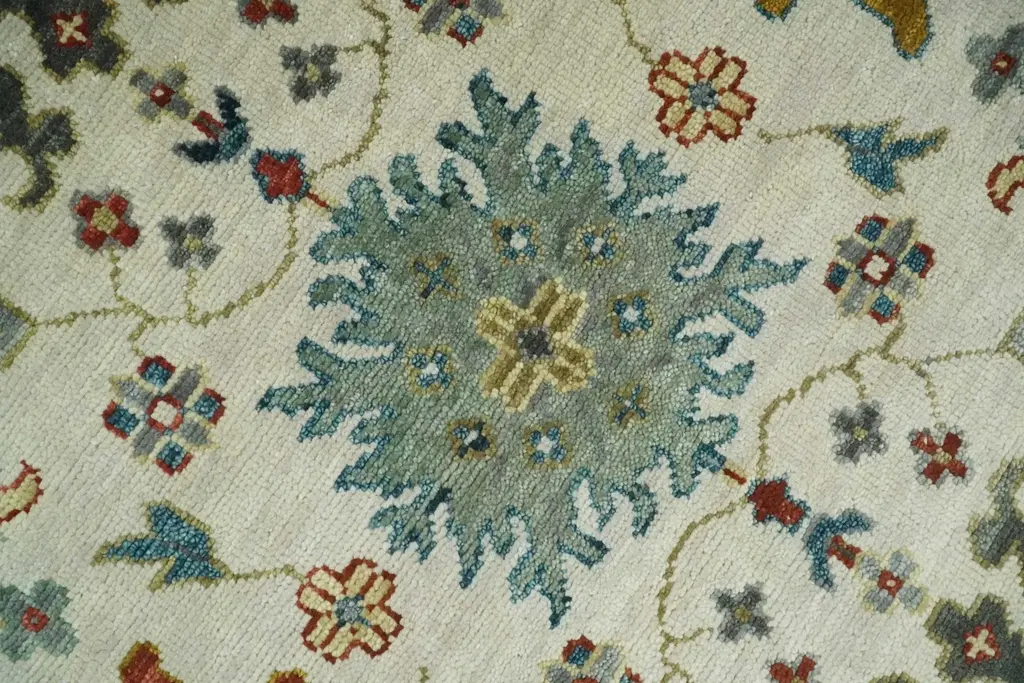 Ivory And Gray Floral Oushak Hand Knotted Custom Made Wool Area Rug - 2.6x14
