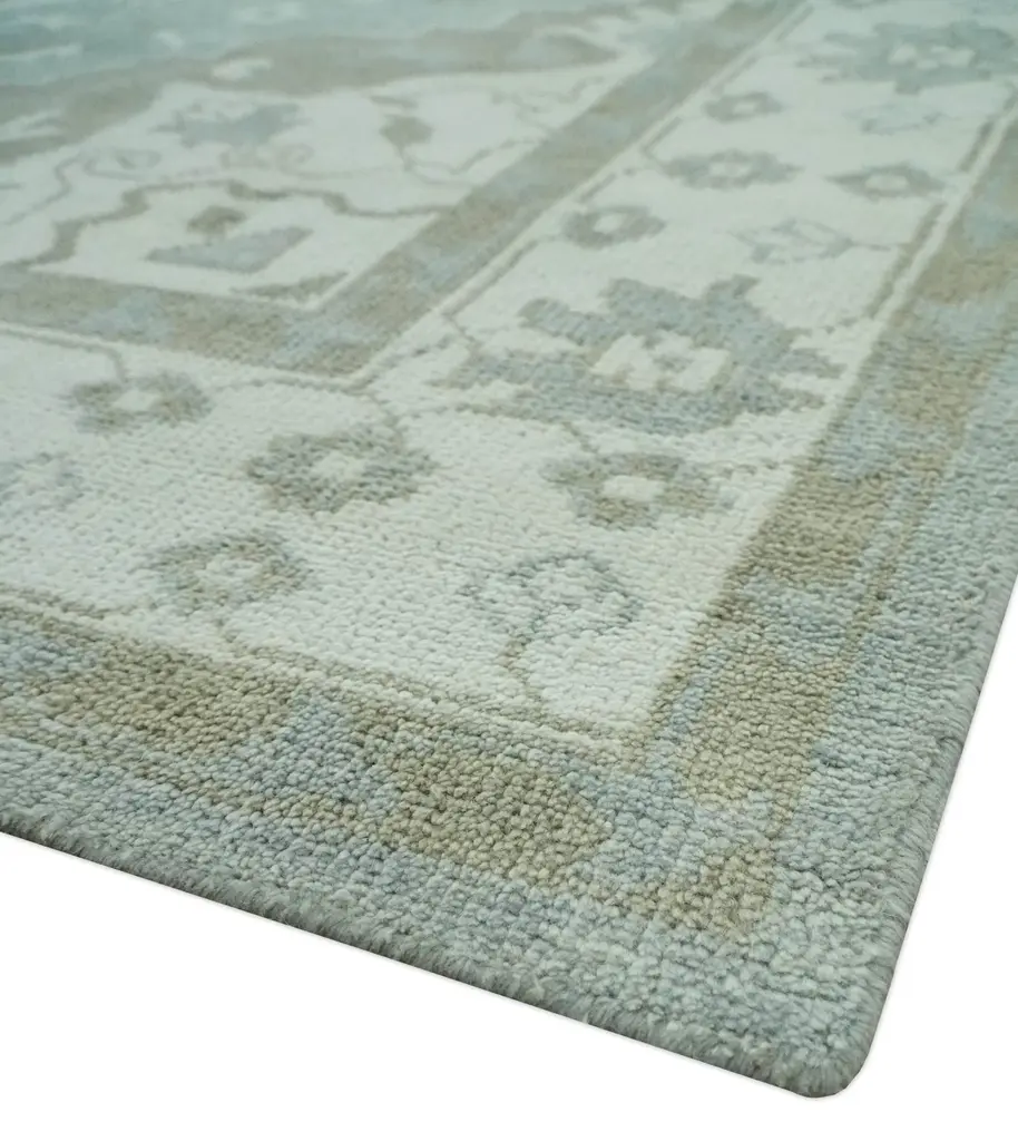 Expertly crafted with traditional Heriz design, this Floral Ivory, Silver, and Olive Hand Knotted Rug adds timeless elegance to any room. Made of wool for durability and comfort, its beautiful medallion pattern in multi-sizes offers versatility and sophistication. Enrich your space with this exquisite rug. Hand-Knotted Made with Wool Made to Order in 30-45 Days Color: Ivory, Silver, and Olive This specific rug is made in India, in the city of Bhadohi. Bhadohi is one of the biggest rug manufacturing cities. Carpet weaving in the region dates back to the 16th century during the reign of Akbar. The skilled artisans of Bhadohi have been carrying the rug-making tradition for centuries. USERS GUIDE Avoid prolonged moisture Vacuum regularly and/or shake to remove dust Do not pull any loose threads. Use scissors to cut the ends simply Blot spills immediately with a white cloth. Harsh chemicals may damage or fade the rug Use rug protectors under heavy furniture