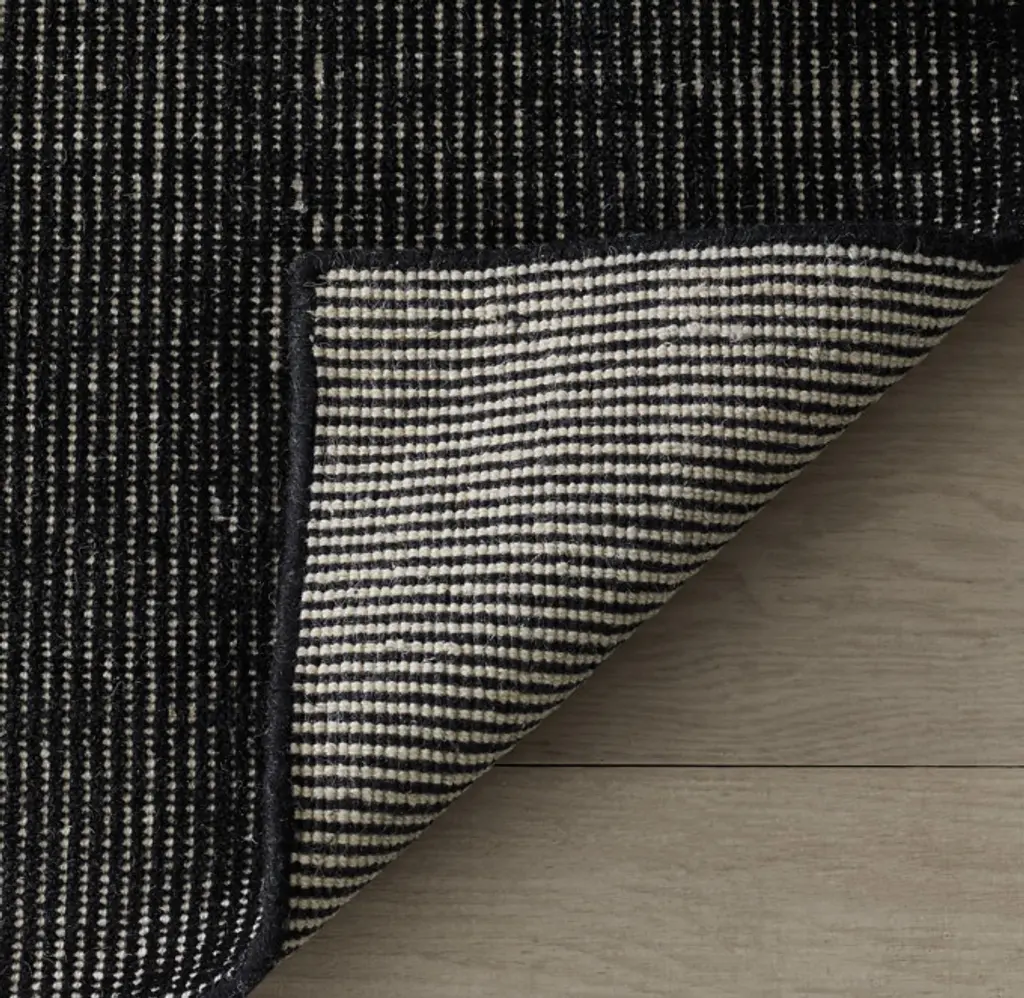 High-low textures and tonal hues lend depth and definition to our rug's pile, hand loomed in alternating rows of dense loops and sheared pile. Natural pigments enhance the natural richness, density and shading of the premium wool yarns.