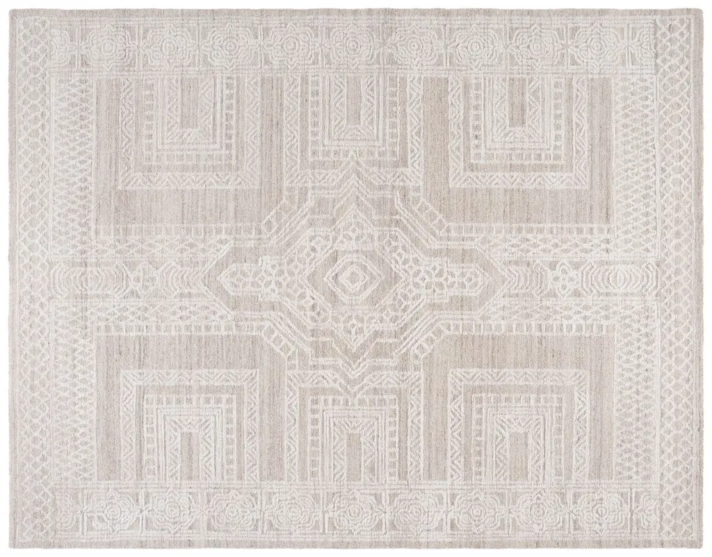 Discover the perfect blend of traditional craftsmanship and modern design with our exquisite hand-tufted area rug. Measuring 3 feet by 5 feet, this small rectangle rug exudes a welcoming charm with its plush 3/8 inch height. Delicately created with a blend of premium wool and cotton, this rug features a harmonious fusion of green and ivory hues. Crafted in the rich textile heritage of India, the rug showcases a mesmerizing geometric pattern woven into its very fabric. Meticulously hand-tufted, each piece is a testament to timeless techniques and skilled artistry. Enhance your living space with this piece that brings depth and sophistication to any room. The unique pattern, originating from the image, will harmoniously tie together your decor while providing a soft and luxurious underfoot experience. Emanating elegance and quality, our wool and cotton area rug is a statement piece that offers durability, comfort, and style.