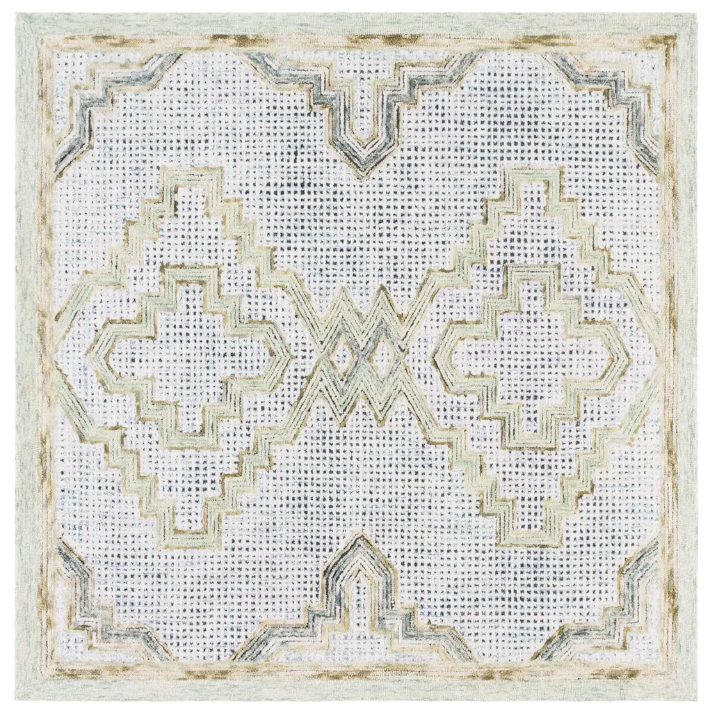 Discover the perfect blend of traditional craftsmanship and modern design with our exquisite hand-tufted area rug. Measuring 3 feet by 5 feet, this small rectangle rug exudes a welcoming charm with its plush 3/8 inch height. Delicately created with a blend of premium wool and cotton, this rug features a harmonious fusion of green and ivory hues. Crafted in the rich textile heritage of India, the rug showcases a mesmerizing geometric pattern woven into its very fabric. Meticulously hand-tufted, each piece is a testament to timeless techniques and skilled artistry. Enhance your living space with this piece that brings depth and sophistication to any room. The unique pattern, originating from the image, will harmoniously tie together your decor while providing a soft and luxurious underfoot experience. Emanating elegance and quality, our wool and cotton area rug is a statement piece that offers durability, comfort, and style.