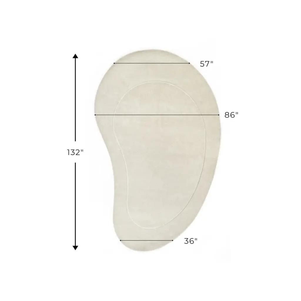 This unique kidney-shaped rug is inspired by the Atomic Age but also has the softness of elements of Art Deco. The plush, two-level pile and neutral colors create a metaphorical platform, setting the stage for both comfort and high design, while blending in beautifully with your décor. Pushing the boundaries of modern rug design, it’s a bold addition to our repertoire.