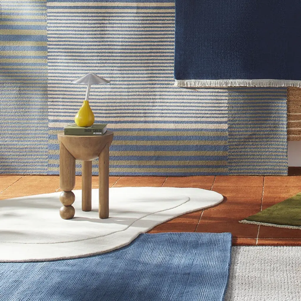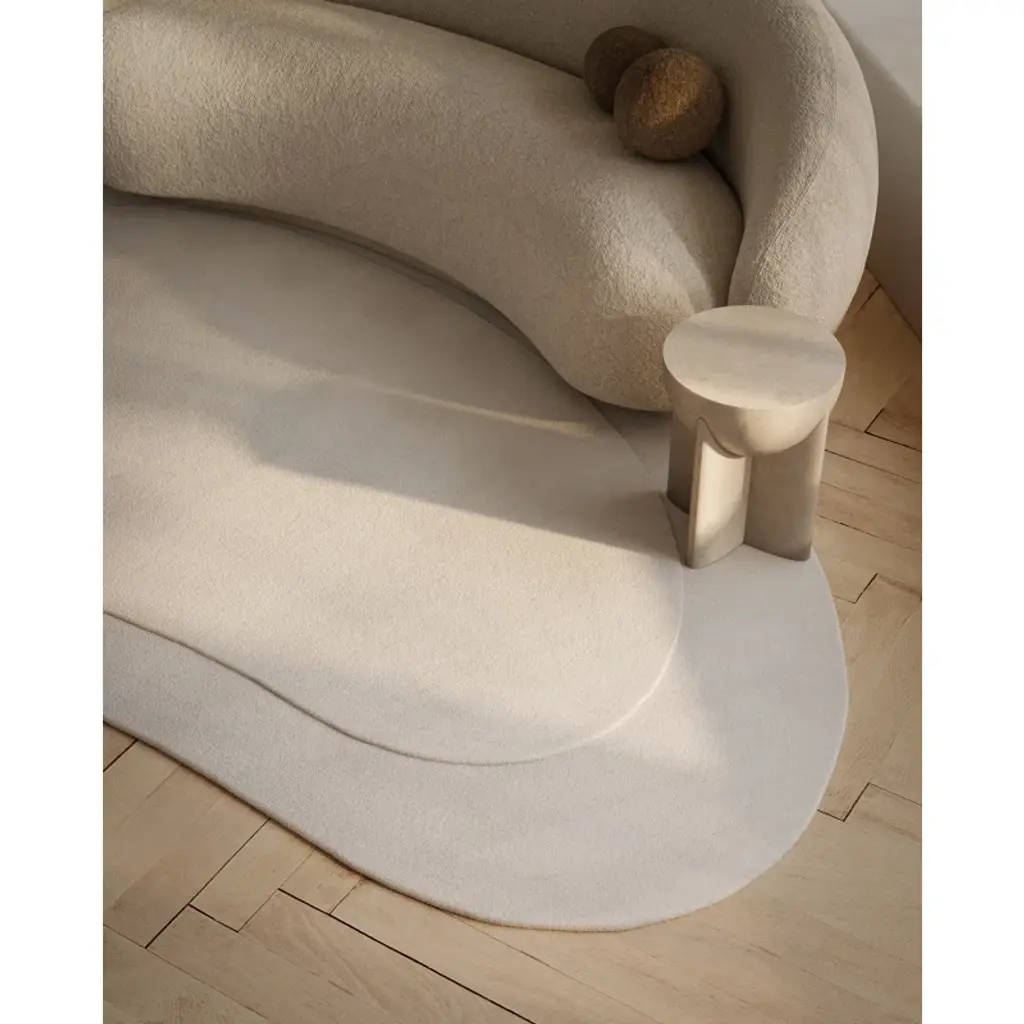 This unique kidney-shaped rug is inspired by the Atomic Age but also has the softness of elements of Art Deco. The plush, two-level pile and neutral colors create a metaphorical platform, setting the stage for both comfort and high design, while blending in beautifully with your décor. Pushing the boundaries of modern rug design, it’s a bold addition to our repertoire.