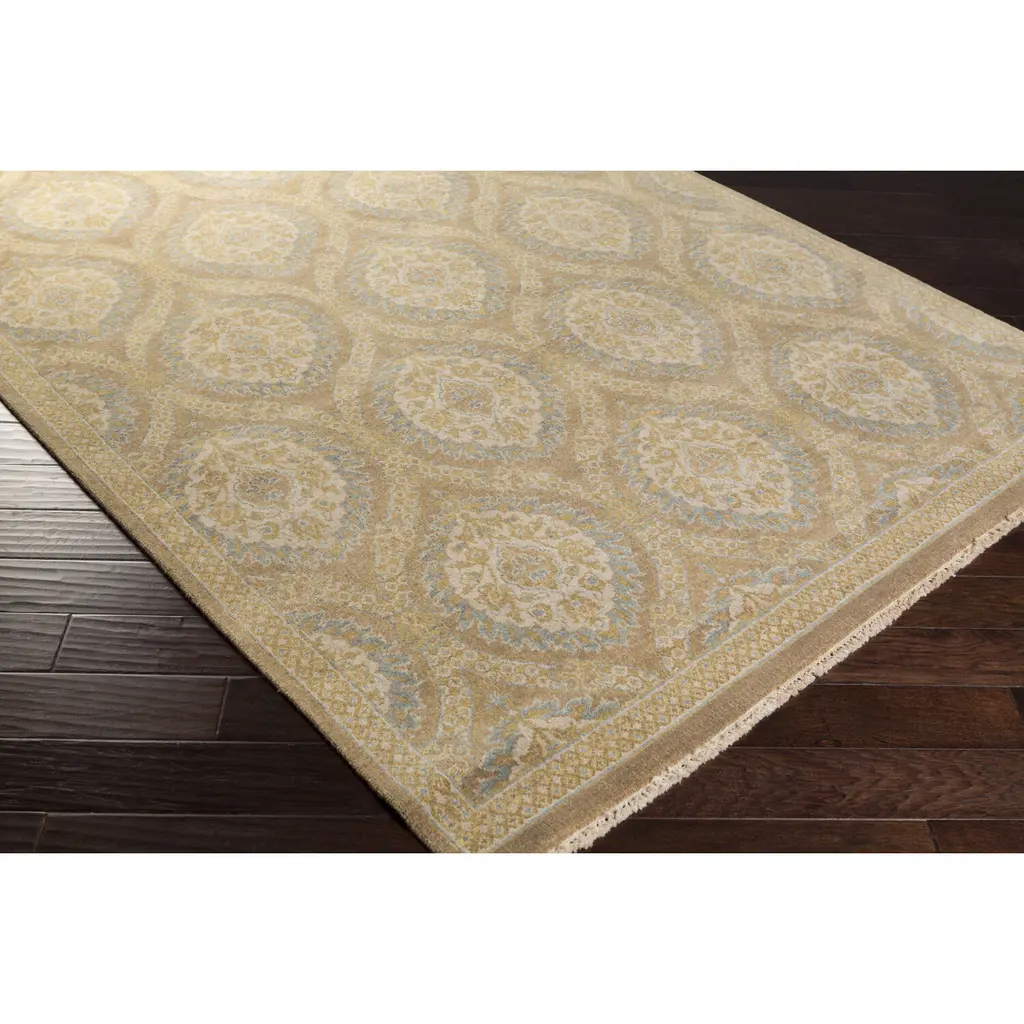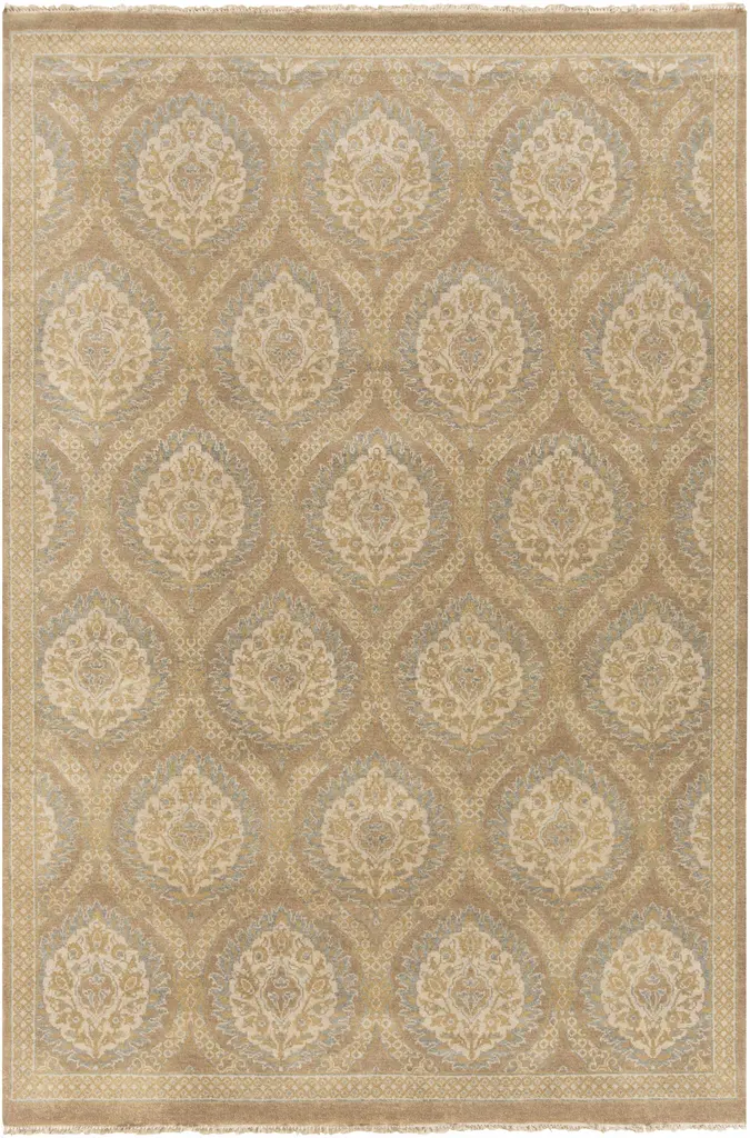Jade 108 X 72 Inch Tan / Wheat / Beige / Pale Blue / Ice Blue Handmade Rug