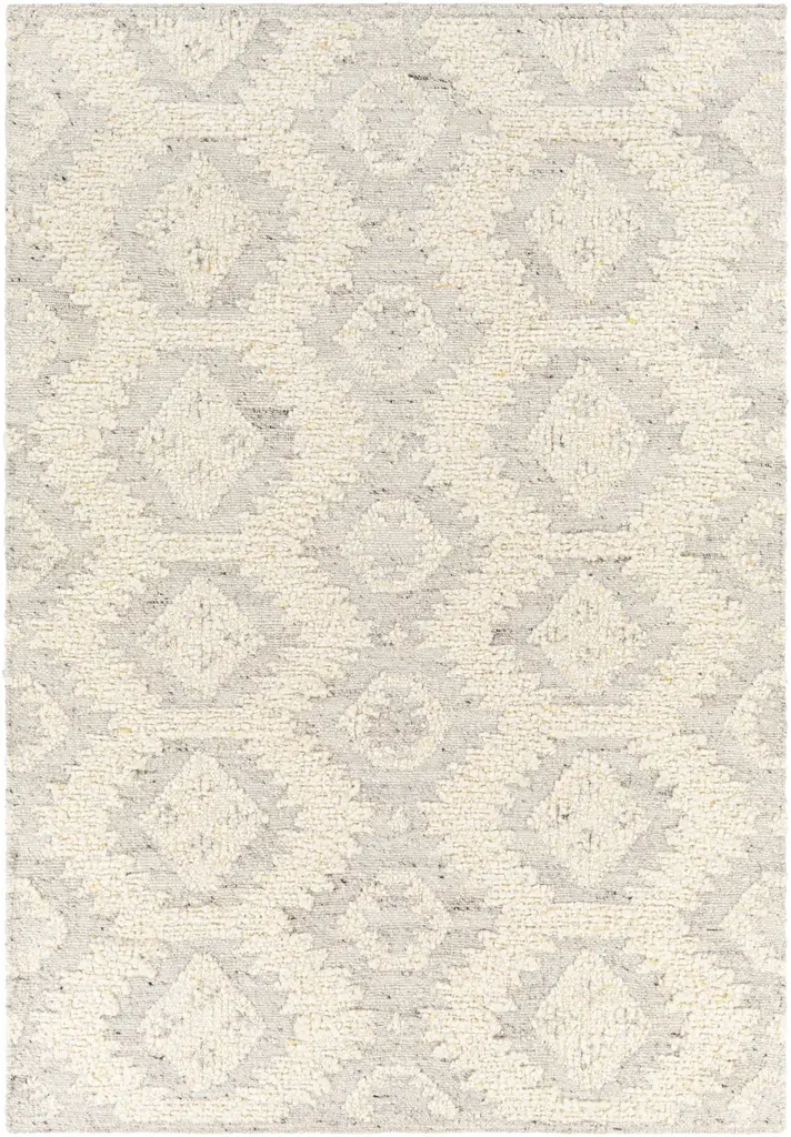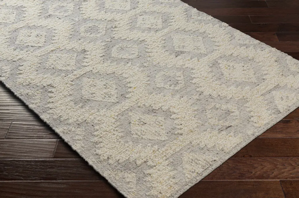 Collection: Jagupit Colors: Cream, Light Slate, Dark Red Construction: Hand Woven Material: 100% Wool Pile: No Pile Styles: Transitional,Bohemian Made In: India Thickness: 0.25" Price Range: $$$$$ (Affordable)