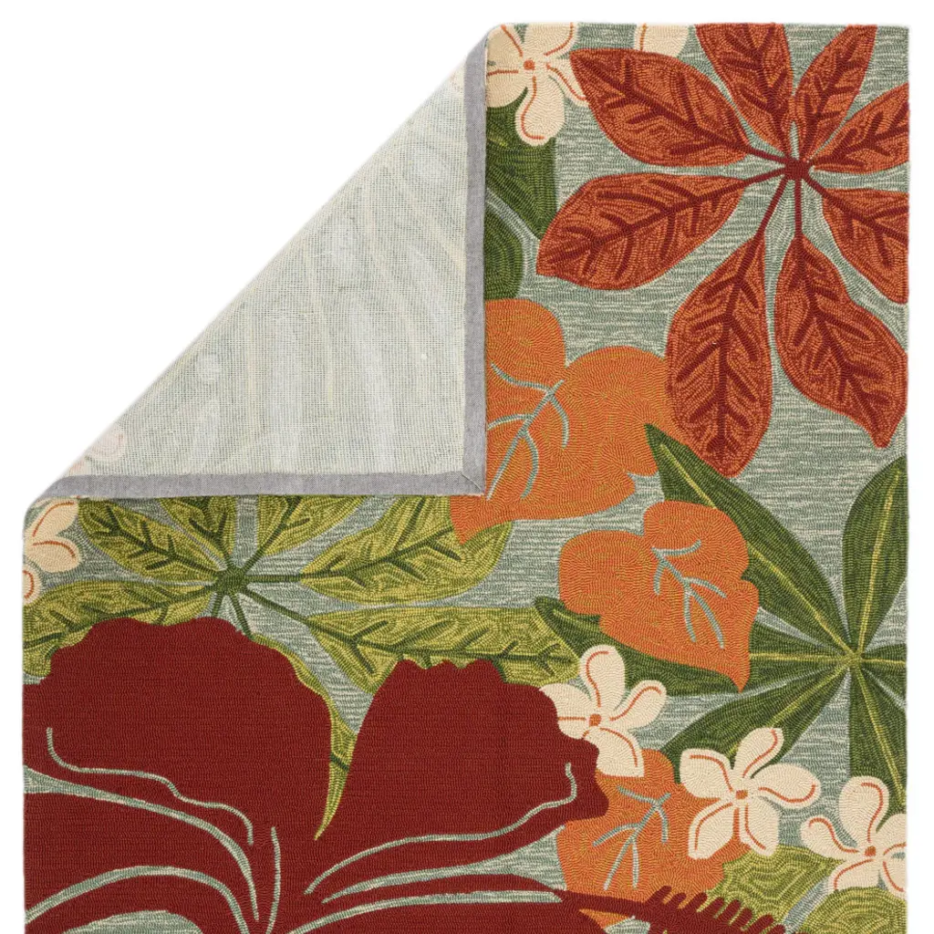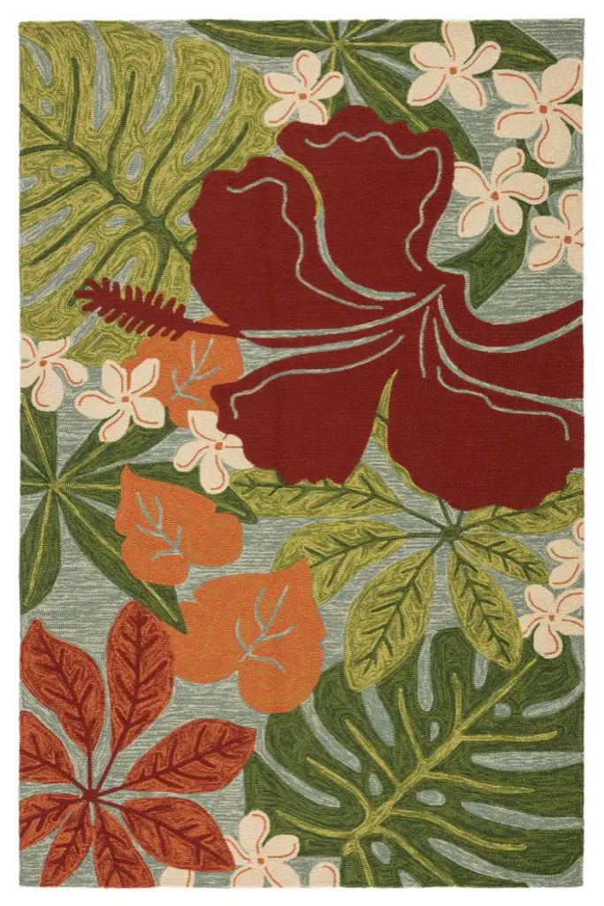 This playful indoor or outdoor area rug showcases a contemporary design and tropical hues. Vibrant beach botanicals create a graphic statement on the light blue backdrop for a bold dose of coastal style, while the looped pile lends unexpected texture to this durable layer.High-Performance Style: this indoor/outdoor rug is specifically designed to tolerate outdoor elements and heavy trafficFade-Resistant Finish: artfully constructed of 100% polypropylene for a durable qualityLooped Pile: looped pile lends rich texture to the stain-resistant fibersEasy Care: this rug is easy to clean and is weather-resistant; vacuum regularly for indoor useRug Pad Recommended: allow maximum air flow and additional cushioning with an outdoor rug pad