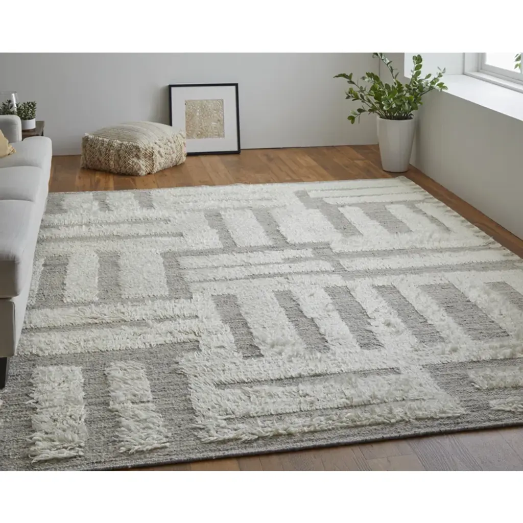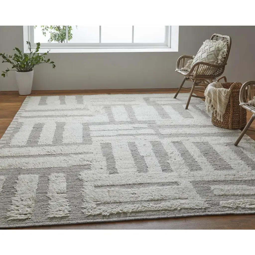 Jalaycia Geometric Hand Loomed Wool Area Rug In Gray