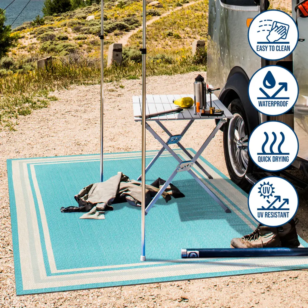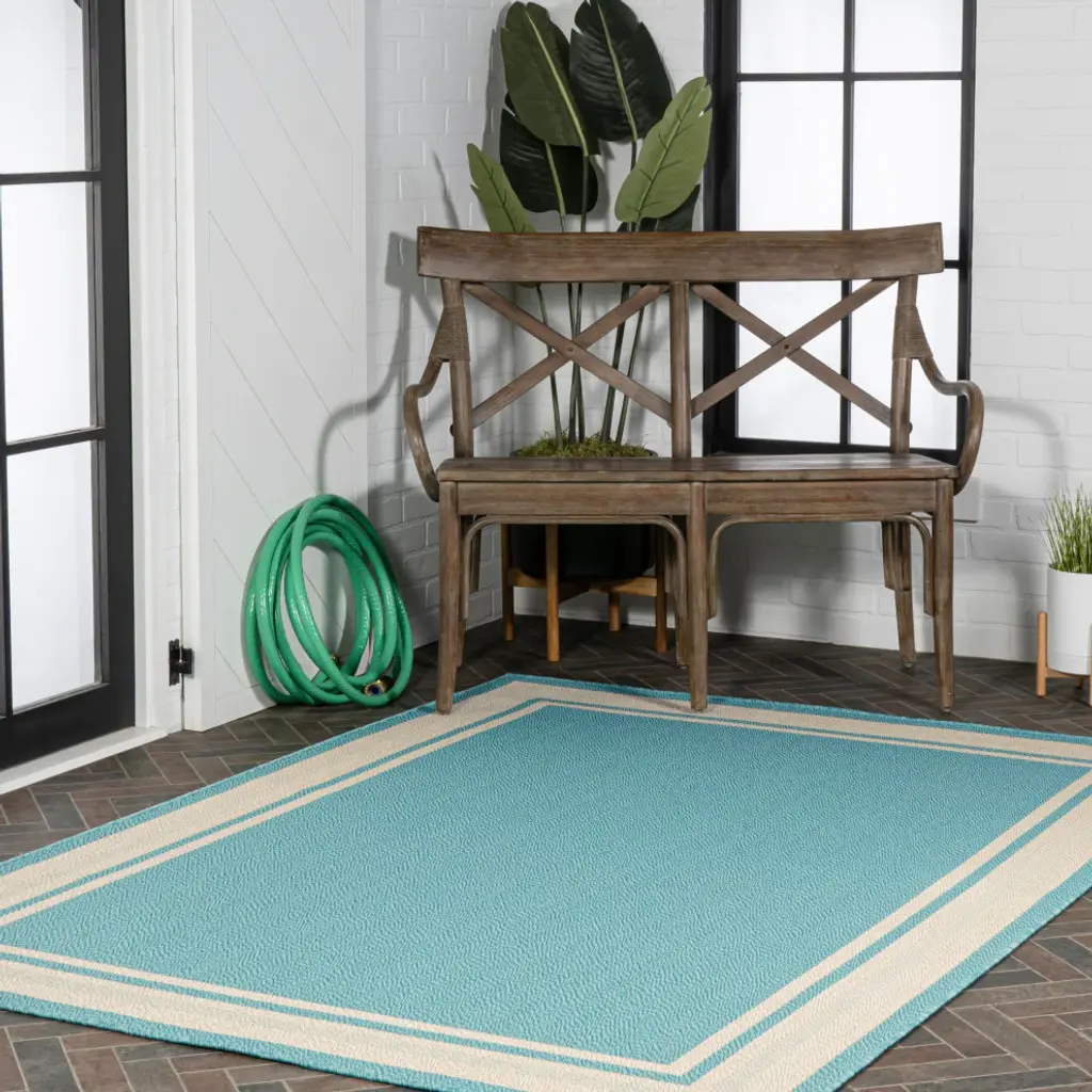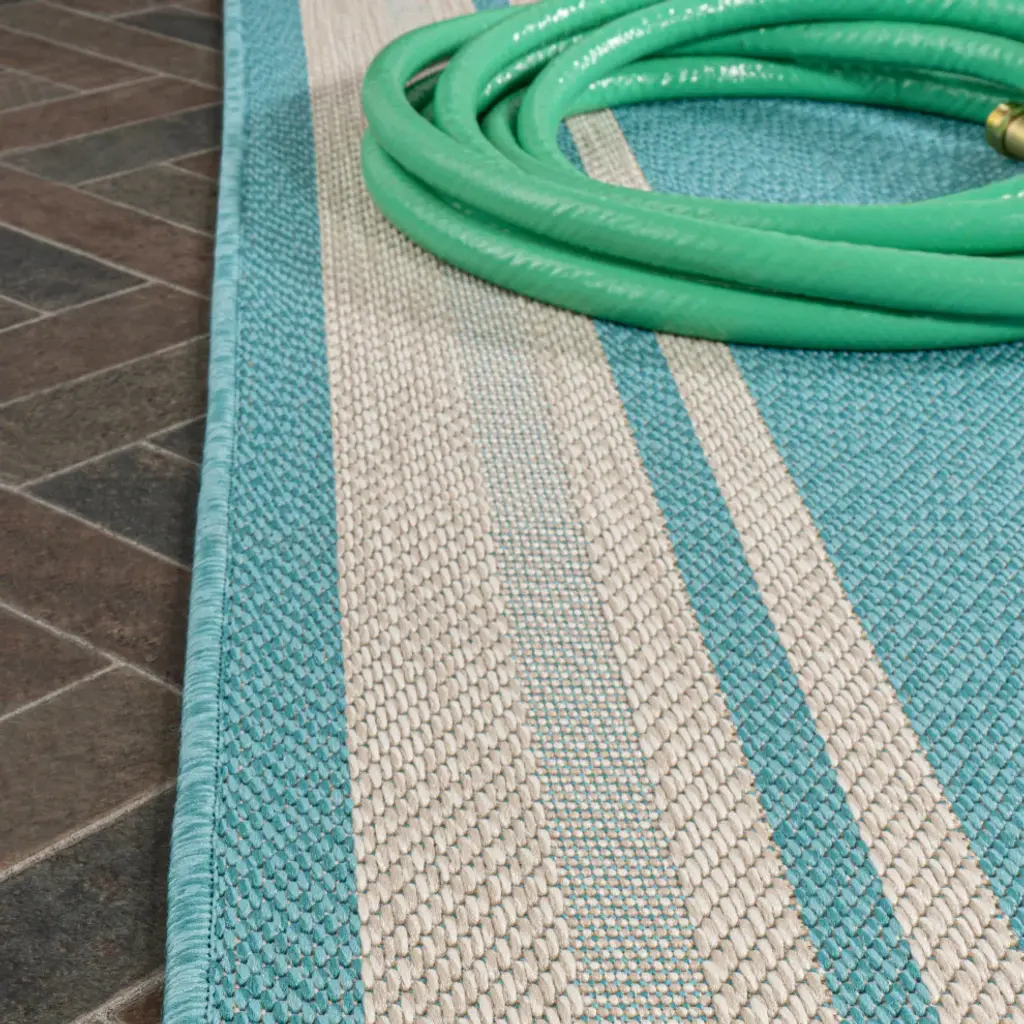 James Modern Border Stripe Indoor/outdoor Area Rug, Aqua/beige, 5X8