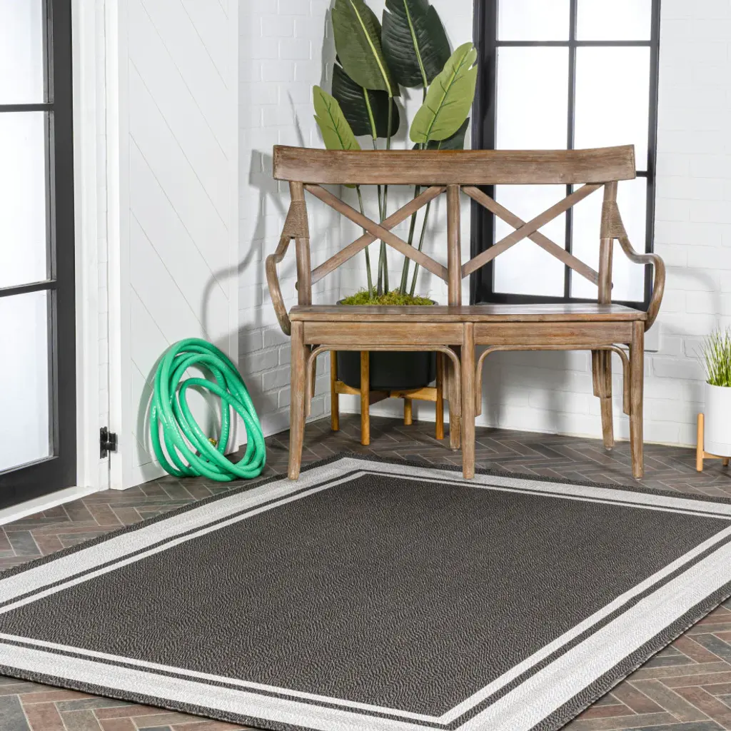 Inspired by the clean lines of modern design, our stripe border rug has a durable low pile. This versatile pattern is woven in contrasting colors for a low-key, minimalist look. Add graphic punch to your living room, dining room, bedroom, or porch with this easy-care, family-friendly rug.Features:• Durable woven design with a short 0.25" pile• The charcoal and light gray color scheme adds a crisp, modern look to any space• Made from easy-care polypropylene - just sweep, vacuum or hose down with mild soap and water• 100% Polypropylene• No backing, use of rug pad is recommended (sold separately)• Power Loomed in Turkey• Actual Dimension: 7 ft. 10 in. x 10 ft.• Color: Black/Cream• Thickness measures: 0.25 in.• Available in multiple sizes and/or colorsRug Care:• Vacuum regularly and spot clean as needed; avoid direct and continuous exposure to sunlight; use brushless vacuum; remove spills immediately; if liquid, blot with clean, undyed cloth by pressing firmly around the spill to absorb as much as possible; for hard to remove stains, professional rug cleaning is recommended; store in a dry, well ventilated area and rotate for consistent wear• Packing and shipping may cause temporary creases in rugs, which will flatten out after a week on the floor; to expedite the process, try back-rolling your rug before laying it down, and then allow ample time for the remaining creases to relax• Please Note: Due to differences in monitors, some rug colors may vary slightly. Lengths and widths may vary from the published dimensions. Patterns may vary slightly according to shape and size selected.About us:Style your floors with JONATHAN Y. By combining fine craftsmanship and design, this New York creative studio is bringing fashion to your floors. The collection mixes sustainable organic materials, vibrant colors and trend worthy styles to create JONATHAN Y''s distinctive catalog of rugs.