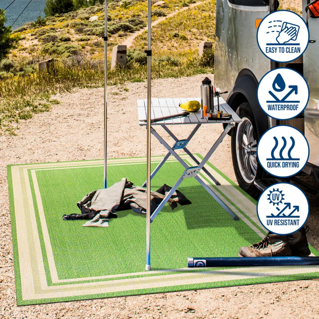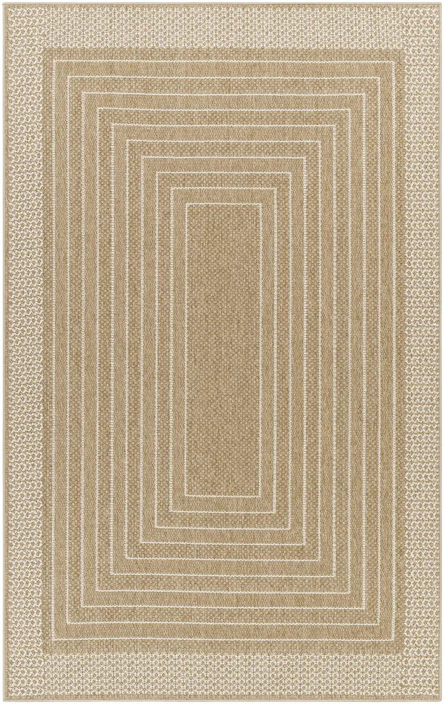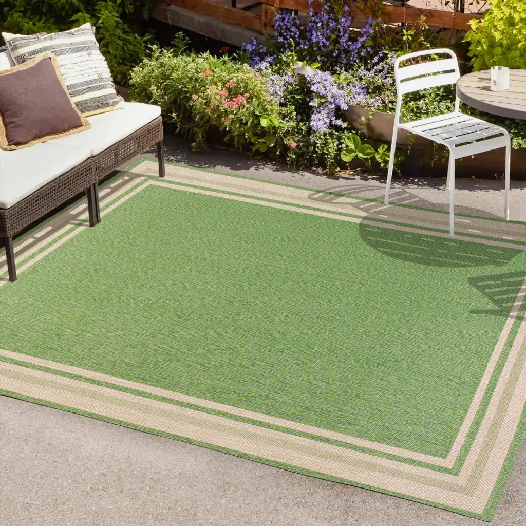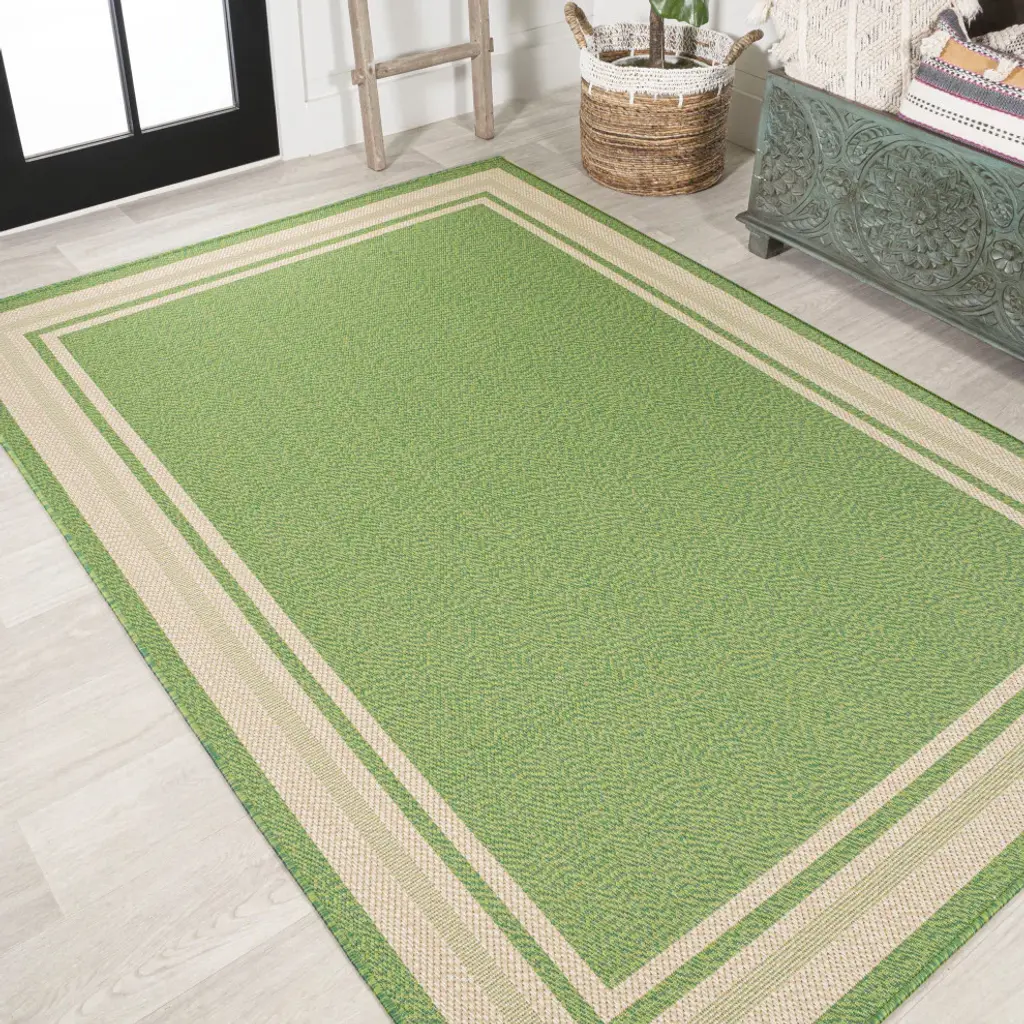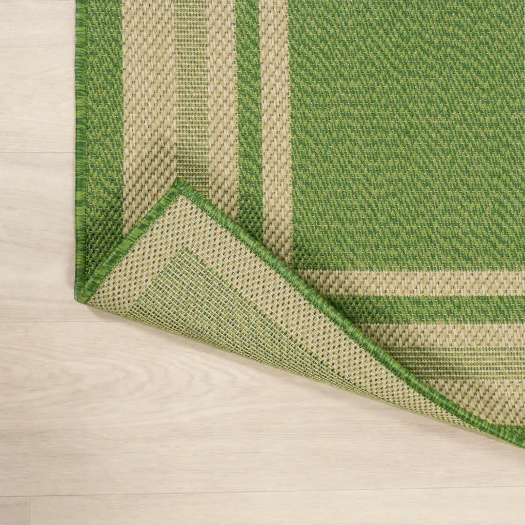 James Modern Border Stripe Indoor/outdoor Area Rug, Green/cream, 5X8