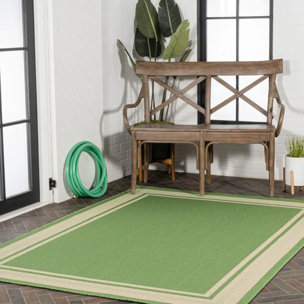 Inspired by the clean lines of modern design, our stripe border rug has a durable low pile. This versatile pattern is woven in contrasting colors for a low-key, minimalist look. Add graphic punch to your living room, dining room, bedroom, or porch with this easy-care, family-friendly rug.Features:• Durable woven design with a short 0.25" pile• The green and ivory color scheme adds a fresh, garden-inspired look to any space• Made from easy-care polypropylene - just sweep, vacuum or hose down with mild soap and water• 100% Polypropylene• No backing, use of rug pad is recommended (sold separately)• Power Loomed in Turkey• Actual Dimension: 5 ft. 3 in. x 7 ft. 7 in.• Color: Green/Cream• Thickness measures: 0.25 in.• Available in multiple sizes and/or colorsRug Care:• Vacuum regularly and spot clean as needed; avoid direct and continuous exposure to sunlight; use brushless vacuum; remove spills immediately; if liquid, blot with clean, undyed cloth by pressing firmly around the spill to absorb as much as possible; for hard to remove stains, professional rug cleaning is recommended; store in a dry, well ventilated area and rotate for consistent wear• Packing and shipping may cause temporary creases in rugs, which will flatten out after a week on the floor; to expedite the process, try back-rolling your rug before laying it down, and then allow ample time for the remaining creases to relax• Please Note: Due to differences in monitors, some rug colors may vary slightly. Lengths and widths may vary from the published dimensions. Patterns may vary slightly according to shape and size selected.About us:Style your floors with JONATHAN Y. By combining fine craftsmanship and design, this New York creative studio is bringing fashion to your floors. The collection mixes sustainable organic materials, vibrant colors and trend worthy styles to create JONATHAN Y''s distinctive catalog of rugs.