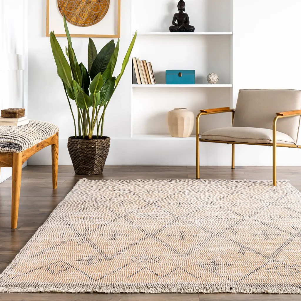 Janine Cotton Trellis Rug | Beige - 5' X 8'