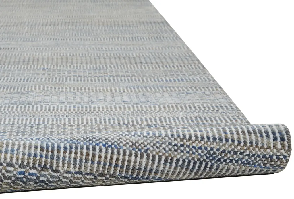 Collection: Janson Colors: Silver Gray Construction: Hand Knotted Material: Face: Wool, Viscose Pile: Low Pile Pile Height: 0.5" Styles: Transitional,Casual,Farmhouse Backing: N/A Made In: India Thickness: 0.5" Price Range: $$$$$ (Premium)