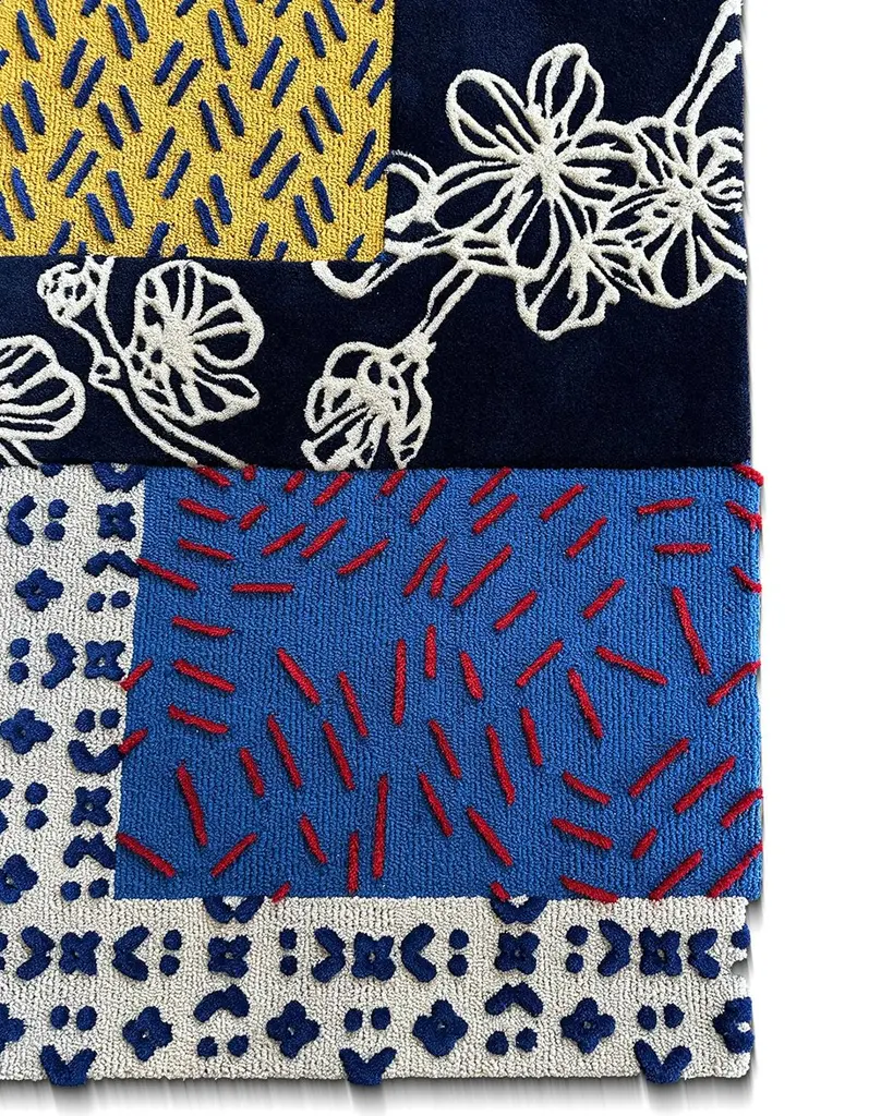 Both rustic and refined, our Sashiko-inspired tufted rug offers a contemporary reinterpretation of timeless Sashiko embroidery, seamlessly blending tradition with a modern touch. The indigo-dyed denim base color, enriched with subtle variations of white and yellow, mirrors the very fabric typically used as the canvas for Sashiko stitching. Within the rug, an intricate interplay of straight and curved stitches weaves its way, infusing it with dynamic patterns and textures. Vivid red accents, thoughtfully incorporated into the patchwork-inspired rectangular design, provide a striking counterpoint to the rich blue backdrop. RAG under this brand, lies a strong picturesque construct with solid contemporary HOME ornaments. a delicate kind of mix materials arranged in artistic motifs the vision pursued by establishment of high-end line with the highest quality.RAG will constantly focusing and innovating, monitoring craftsmanship behind the product.RAG provide a wider selection to your HOME ornaments.the design will be consisted of limited edition with higher build quality to deliver premium value in unique features.RAG HOME’s products are hand-tufted carpets and rugs inspired by Rannisa Soraya’s, the founder and creative director of the brand, love for travels, music, art and design. Taking inspiration from many forms, Soraya poured her random ideas and patterns from her head into cohesive and decorative designs bound to be the focal point of any spaces.The materials used for hand-tufted rugs contain acrylics in the yarn. We know it might not be the most sustainable materials however we believe it’s more ethical as opposed with use of real wool. Every RAG Home products are made sustainably and ethically since we employ craftmen from the village of Solo to help their economic developmentsRAG Home is conceived as an outlet for the founder to explore and pour her imaginagions into a decorative products fit for any spaces; be it living or commercial. We believe that rugs and carpets are the soul of the room and uniquely-designed rugs should be more accessible to many; hence the popularity of our products. As mentioned above, our commitment in hiring craftsmen from less developed village of Solo in Central Java, to further help the cractsmen’ and the villages’ economic development and growth, is our way of giving back to the community and to keep our diversity program in check