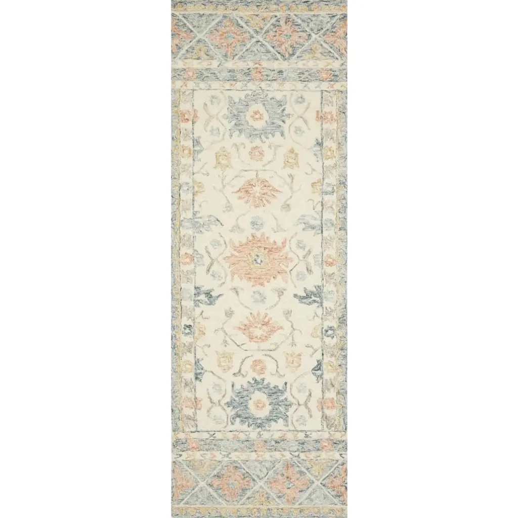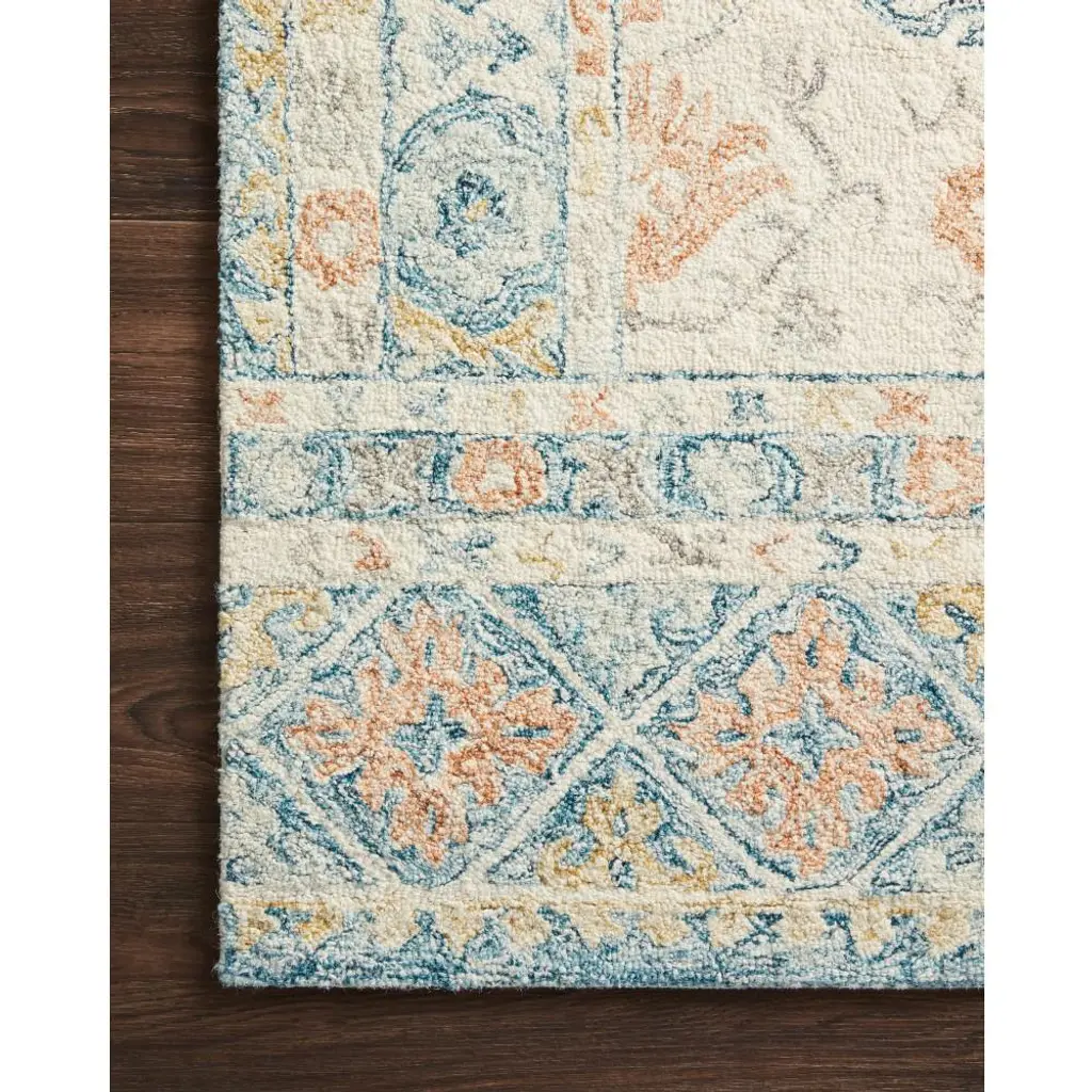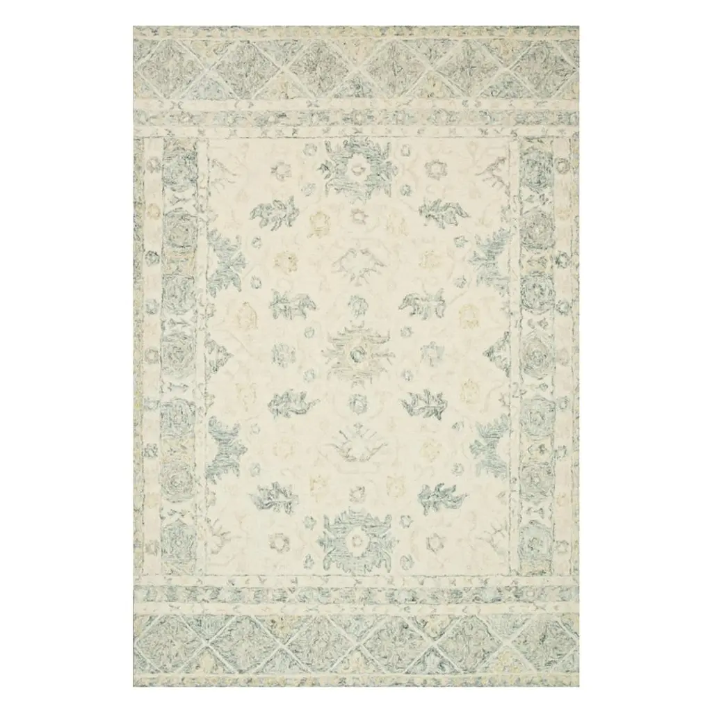 Jareth French Country Ivory Blue Wool Patterned Rug - 8'6"x12'