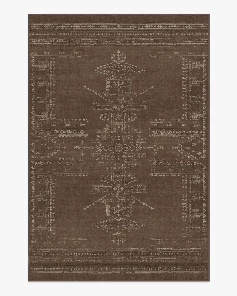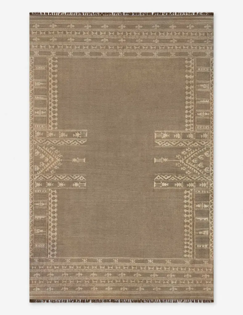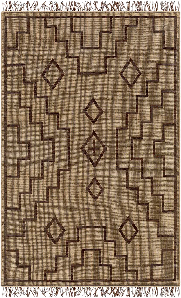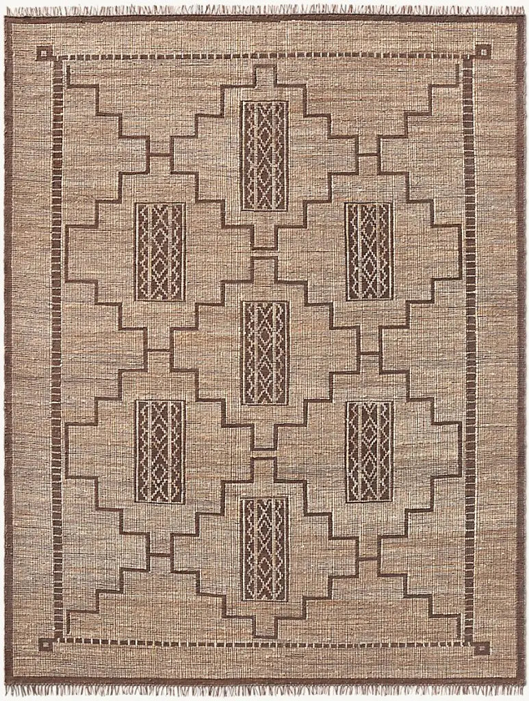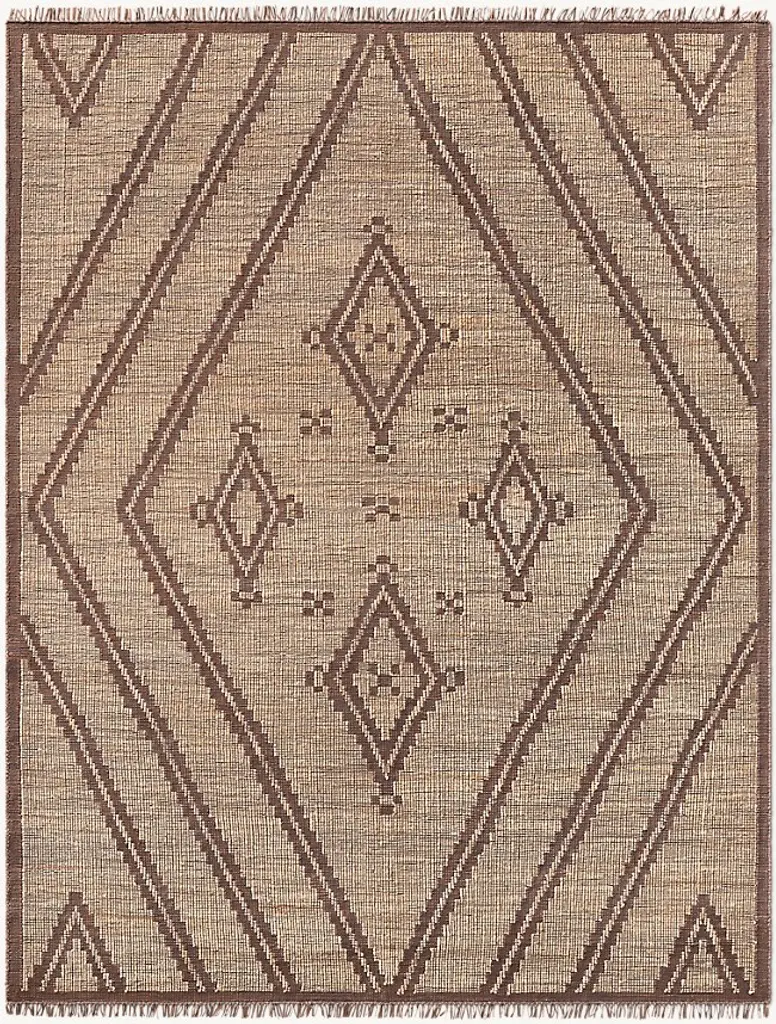 Distilled from the design of a vintage Saharan Tuareg mat, Javan's diamonds and zigzags are updated in handwoven natural jute and leather. A delicately singed finish enhances the patina of the jute's organic abrash shading.