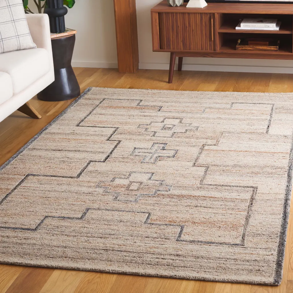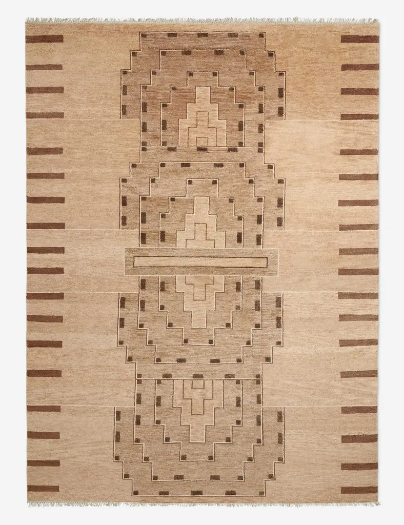 Neutral + intrigue. This modern Southwestern-inspired area rug adds a warm, earthy touch to your living space. Hand-tufted from a blend of 80% wool and 20% cotton, it features a brown and beige color palette that compliments a variety of decor styles. The rug's construction ensures a comfortable feel underfoot, while its cotton backing keeps it in place on your floor. Designed for indoor use, this rug is floor heating safe so feel free to get cozy. Pair it with a rug pad for cushion and stability underfoot.