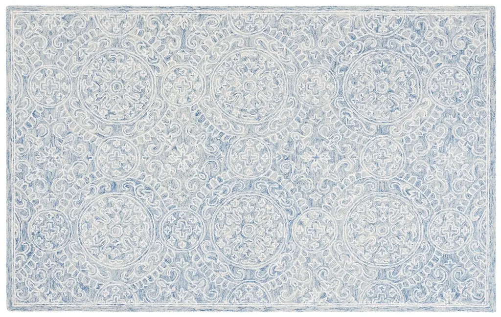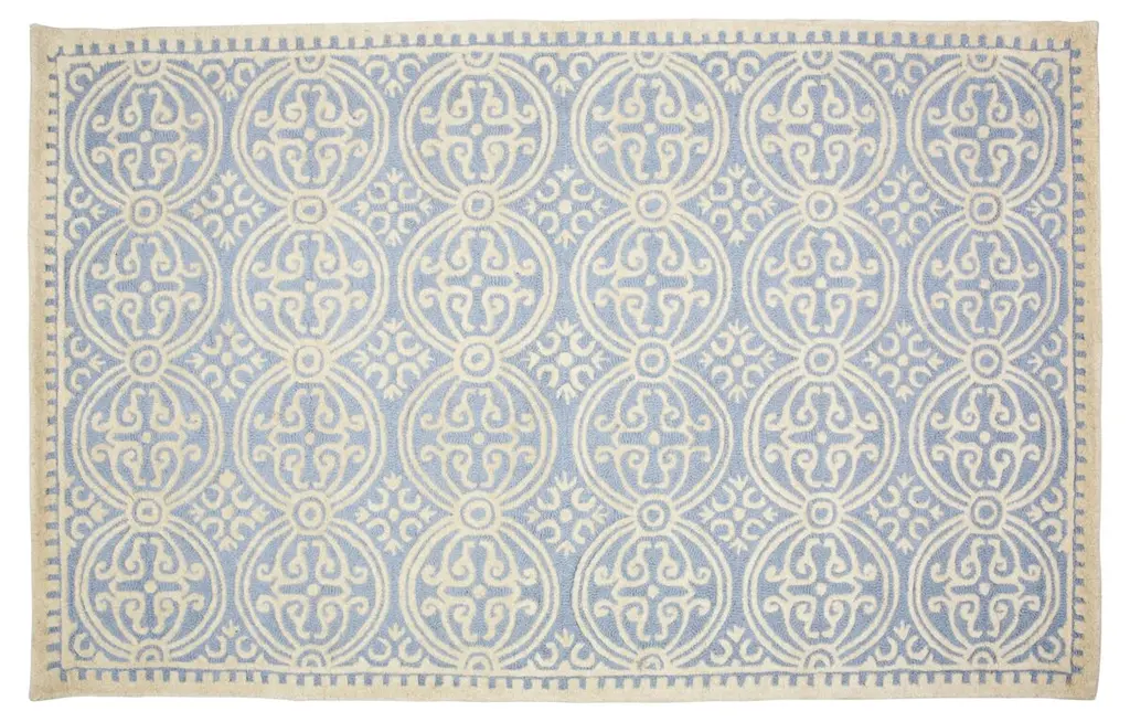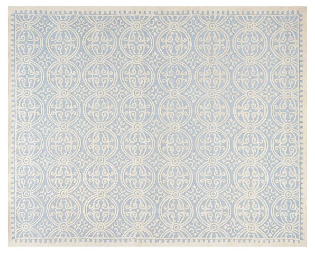 At home in any traditional space, this wool rug features an elegant allover design in refreshing hues of light blue and ivory. We recommend a rug pad to extend the life of your rug and keep it securely in place.