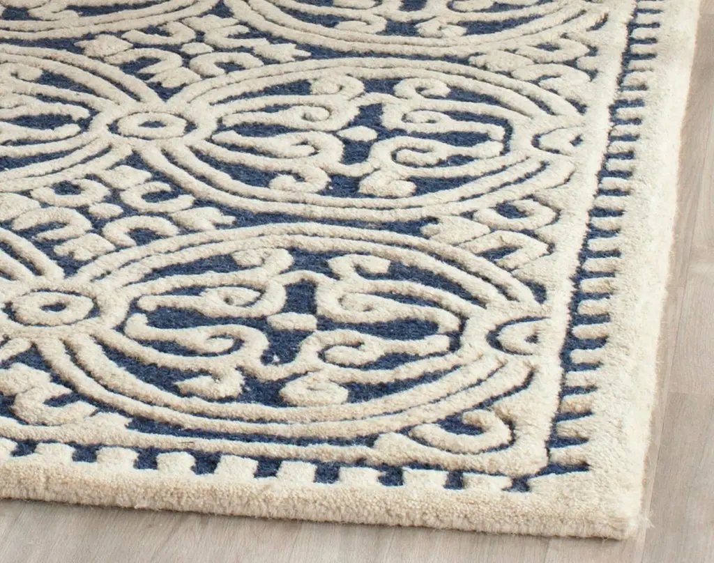 Crafted of hand-tufted wool pile in a contemporary pattern, this rug is sure to make a statement in any room. Made in India. A rug pad is recommended to keep this securely in place.