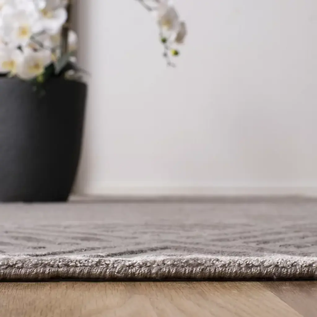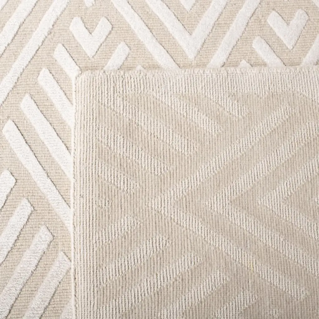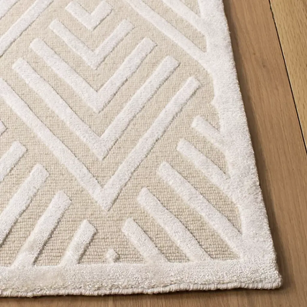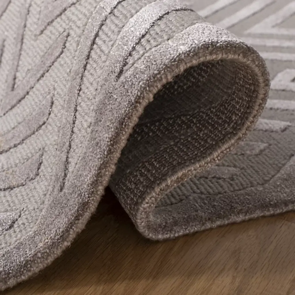 Play a triumphant, brassy solo with the sprightly, layered presentation of the Jazz Age Area Rug from Ralph Lauren. Its rectangular form is enriched by diamond shapes with repeating chevron motifs, and its construction of the soft, blended fabric is hand-knotted in India, hand dyed and sun-dried for a natural element of bespoke elegance, flanked by short fringes