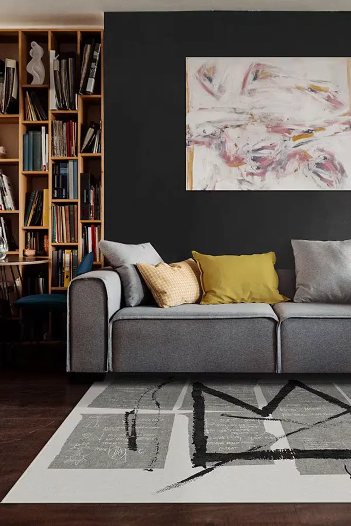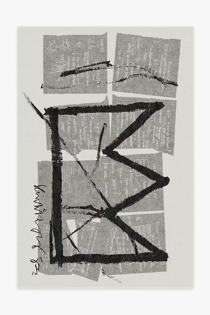 The greys and neutrals in our Jean-Michel Basquiat Dollars In Dimes Greyscale Rug are reminiscent of paper, the medium Basquiat used to create much of his artwork. As an added touch, these colors also provide a soft background for the striking crown motif, based on Basquiat's "600 Dollars in Dimes." Water-resistant, stain-resistant, and machine-washable. Rug colors may vary slightly according to your device and the lighting in your space.