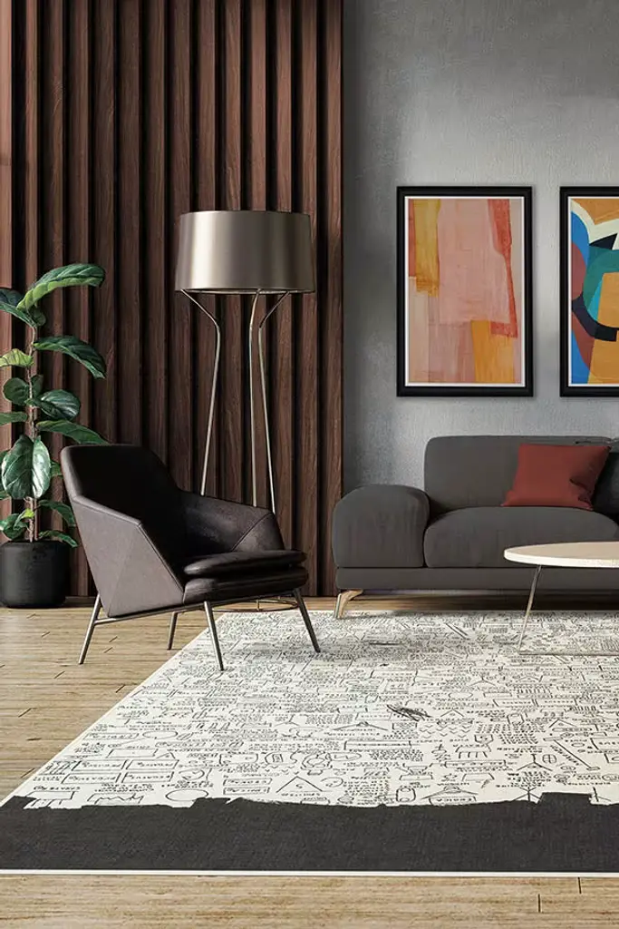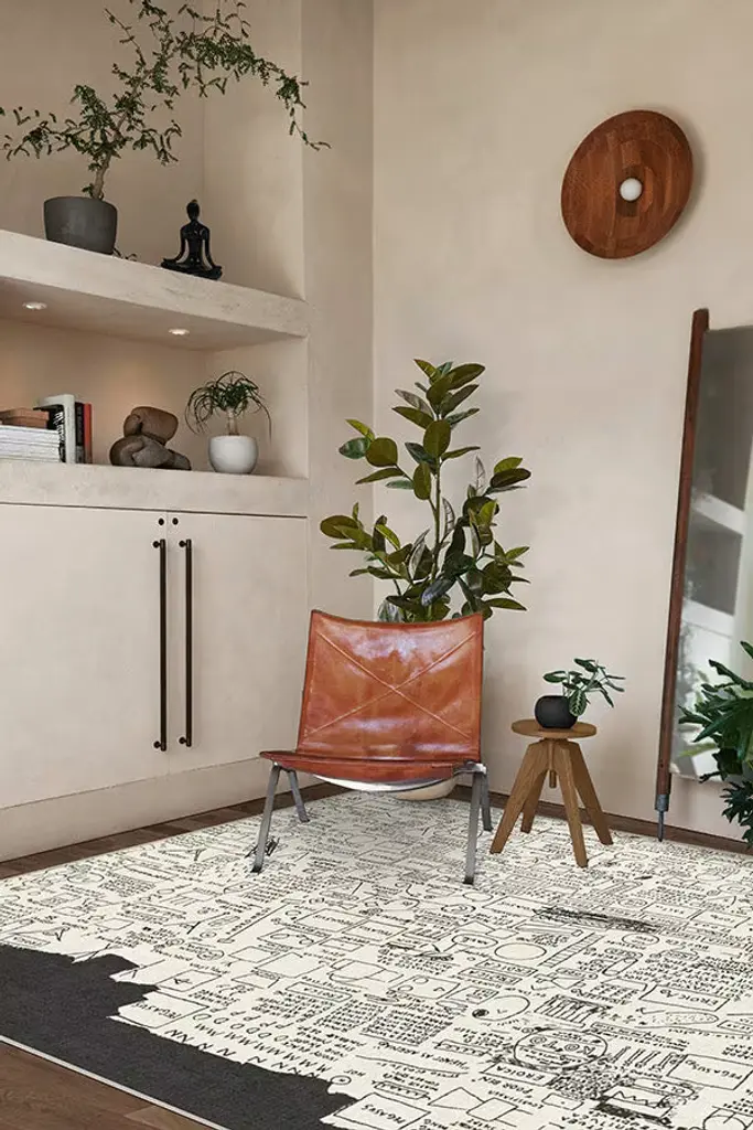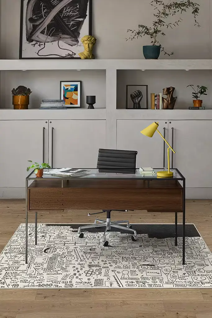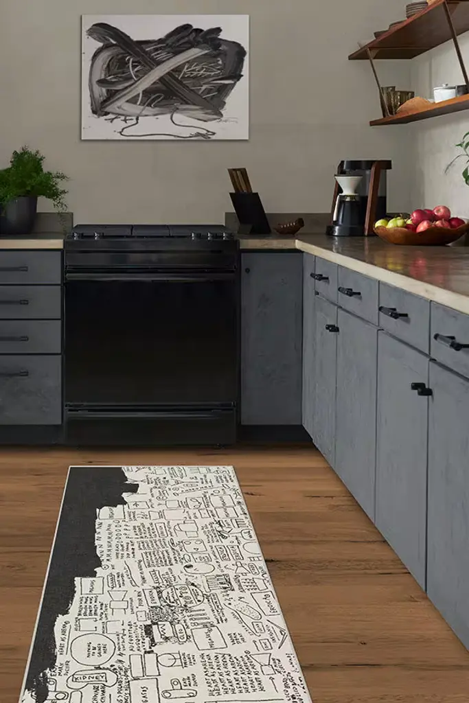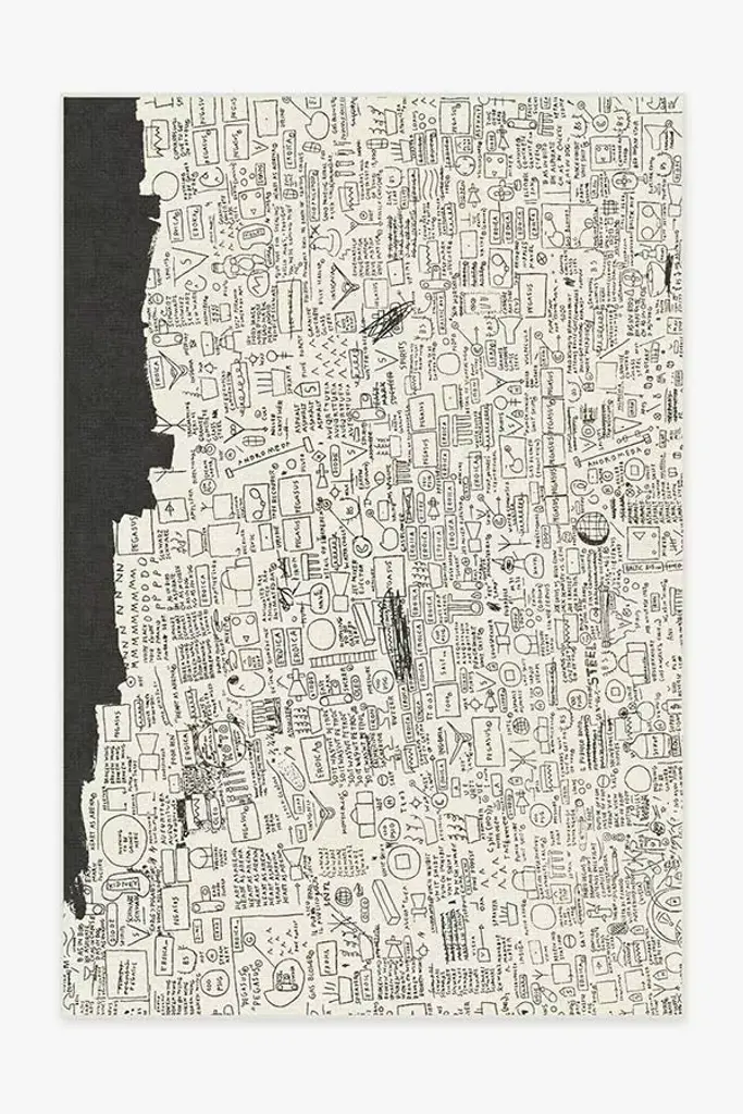 Bold and eye-catching, our Jean-Michel Basquiat Pegasus Black & Ivory Rug is the perfect way to make a statement. Based on Basquiat's "Pegasus," this rug features a high contrast, black and ivory design of hand drawn linework. Water-resistant, stain-resistant, and machine-washable. Rug colors may vary slightly according to your device and the lighting in your space.