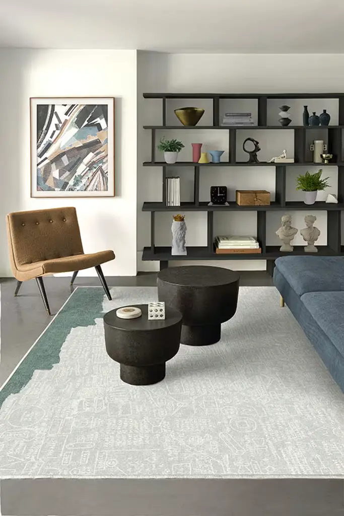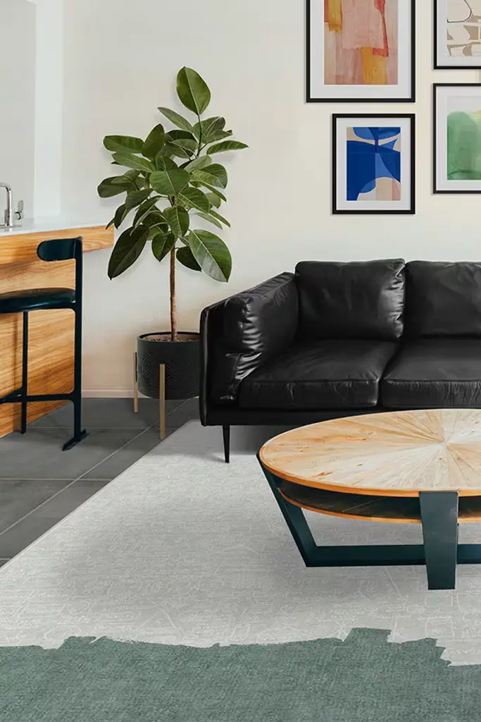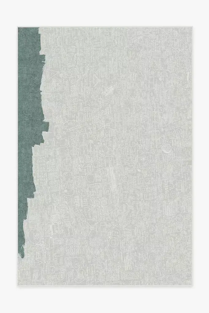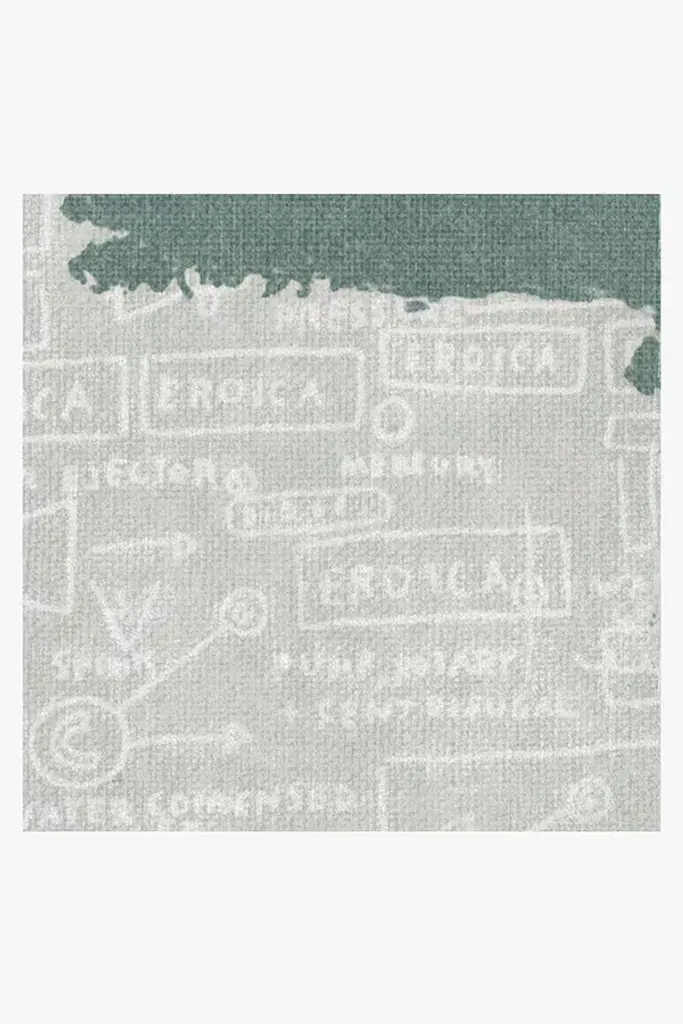 Our Jean-Michel Basquiat Pegasus Pearl & Soft Teal Rug combines the best of two worlds. This design, based on Basquiat's "Pegasus," features the classic and calm look of a neutral rug together with an unexpected pop of color along the edge. Water-resistant, stain-resistant, and machine-washable. Rug colors may vary slightly according to your device and the lighting in your space.