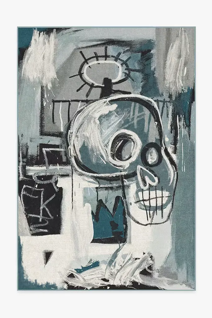 Jean-michel Basquiat Samo Skull Teal Tufted Rug