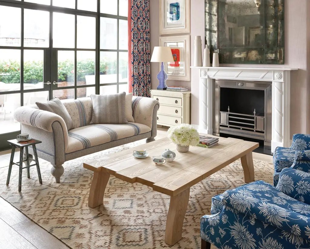 The Jelly Roll Handwoven Wool Rug features a unique design made to resemble a one-of-a-kind vintage document designer Kit Kemp keeps in her personal collection for creative inspiration. Evoking Old-Word style and modern charm, it's handwoven by skilled artisans using wool and cotton into a statement piece that offers striking color combinations and a warm and welcoming style.