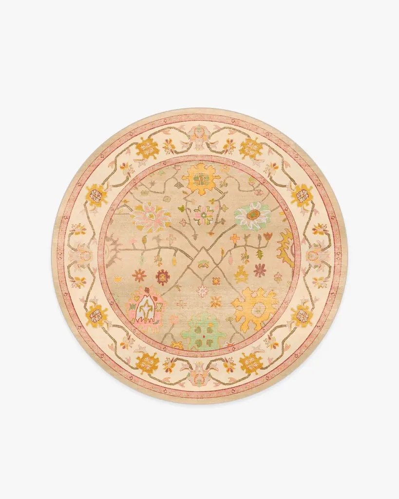 Bring the romance, without the drama, with our Regency-era Jemima Multicolor Rug. Inspired by timeless Oushak rugs, this pink-bordered, opulent design has a playful blend of bright chartreuses, reds, and oranges placed atop a warm blue background. Water-resistant, stain-resistant, and machine-washable. Rug colors may vary slightly according to your device and the lighting in your space.