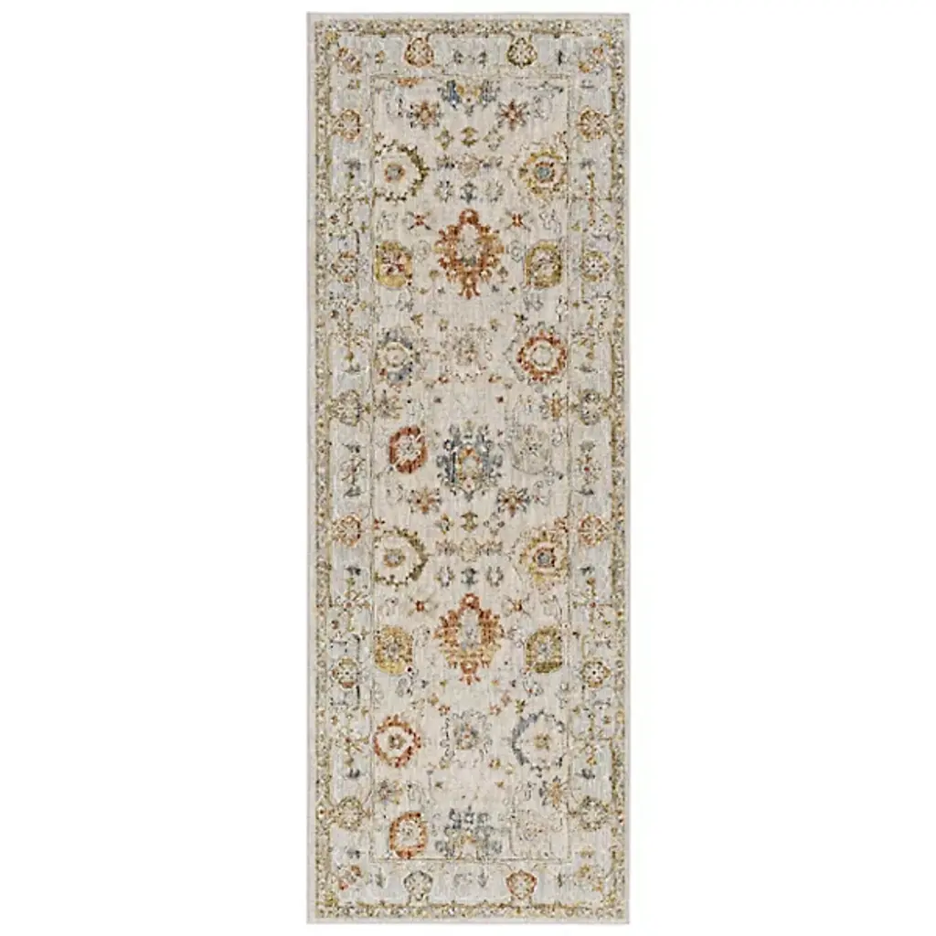 Bring the romance with our Regency-era Jemima Neutral Multicolor Rug. Inspired by timeless Oushak rugs, this opulent design features a playful blend of warm neutrals in the background and border, with accents of mint green, soft pinks, and gold tones. Water-resistant, stain-resistant, and machine-washable. Rug colors may vary slightly according to your device and the lighting in your space.
