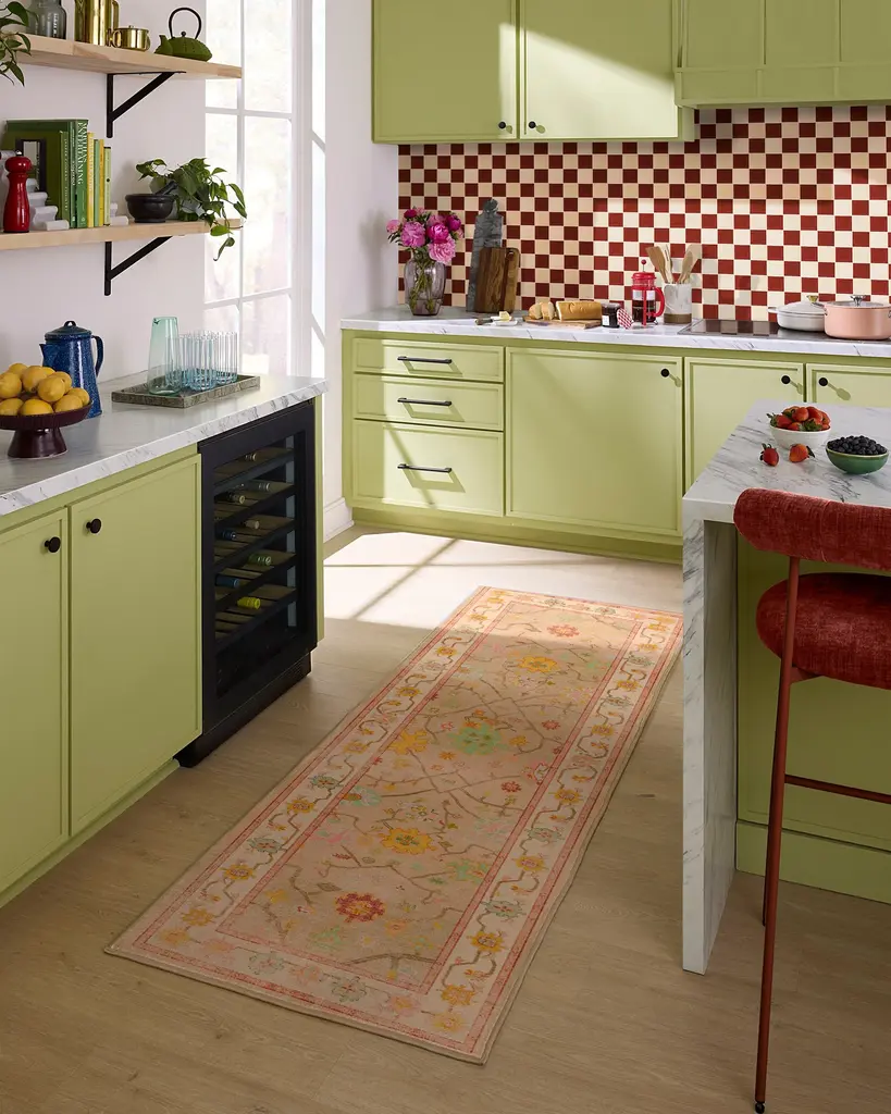 Bring the romance with our Regency-era Jemima Neutral Multicolor Rug. Inspired by timeless Oushak rugs, this opulent design features a playful blend of warm neutrals in the background and border, with accents of mint green, soft pinks, and gold tones. Water-resistant, stain-resistant, and machine-washable. Rug colors may vary slightly according to your device and the lighting in your space.