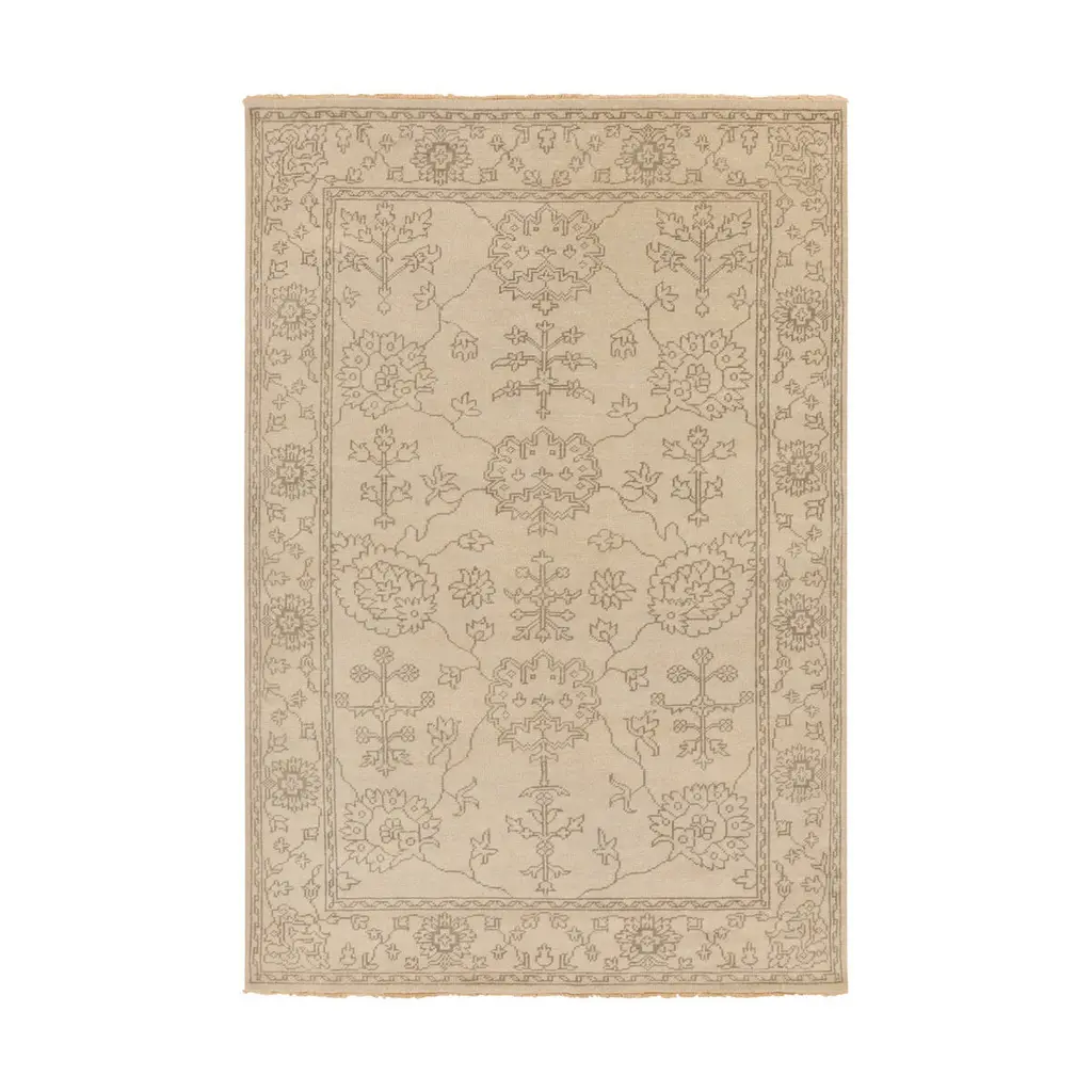 Bring the romance with our Regency-era Jemima Neutral Multicolor Rug. Inspired by timeless Oushak rugs, this opulent design features a playful blend of warm neutrals in the background and border, with accents of mint green, soft pinks, and gold tones. Water-resistant, stain-resistant, and machine-washable. Rug colors may vary slightly according to your device and the lighting in your space.